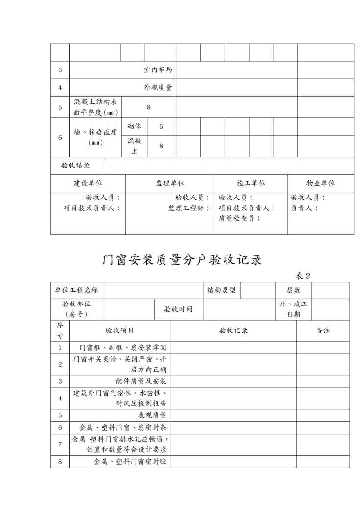 本站资深用户发布了最新的《{品质管理制度表格}单位工程住宅质量验收记录表》文档,以下内容为预览,详细内容可下载阅读。 声明:本站所有文章,如无特殊说明或标注,均为本站原创发布。任何个人或组织,在未征得本站同意时,禁止复制、盗用、采集、发布本站内容到任何网站、书籍等各类媒体平台。如若本站内容侵犯了原著者的合法权益,可联系我们进行处理。