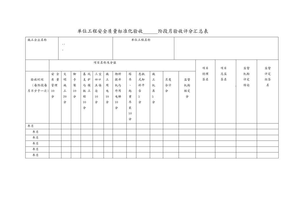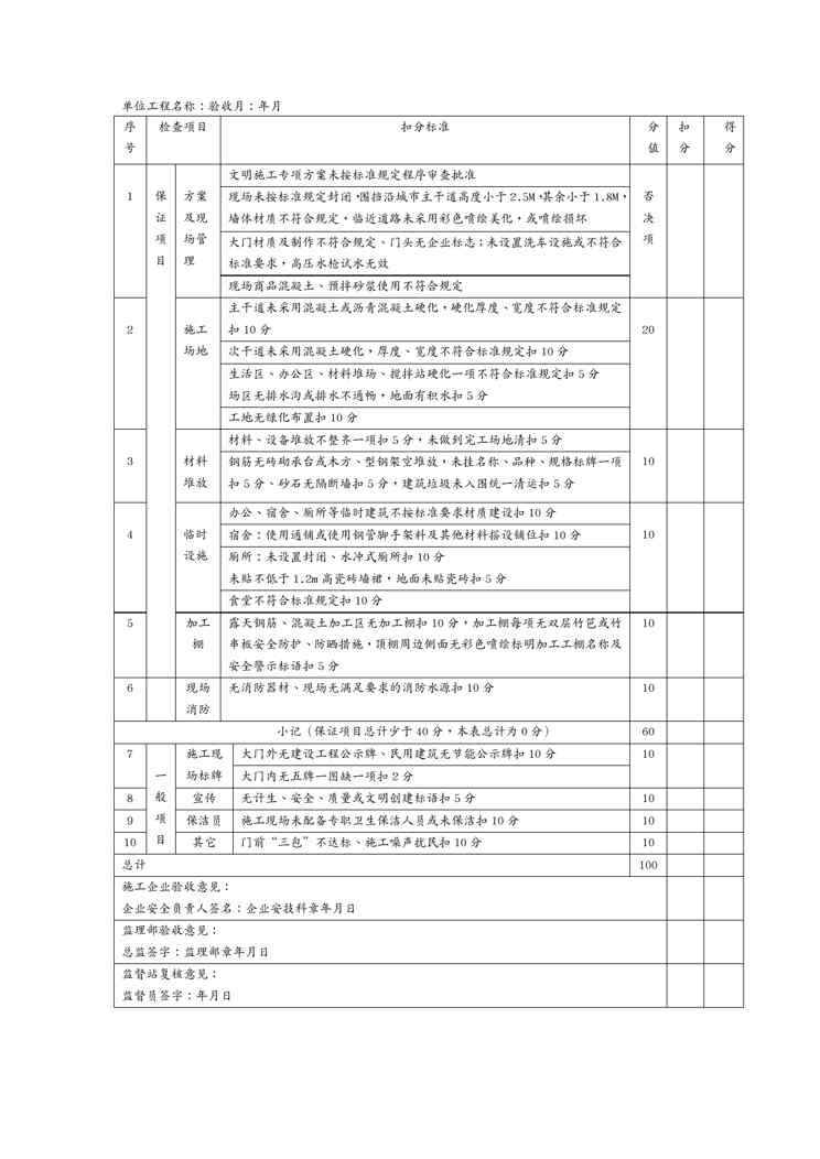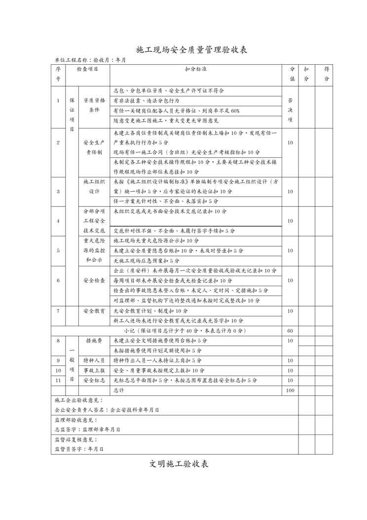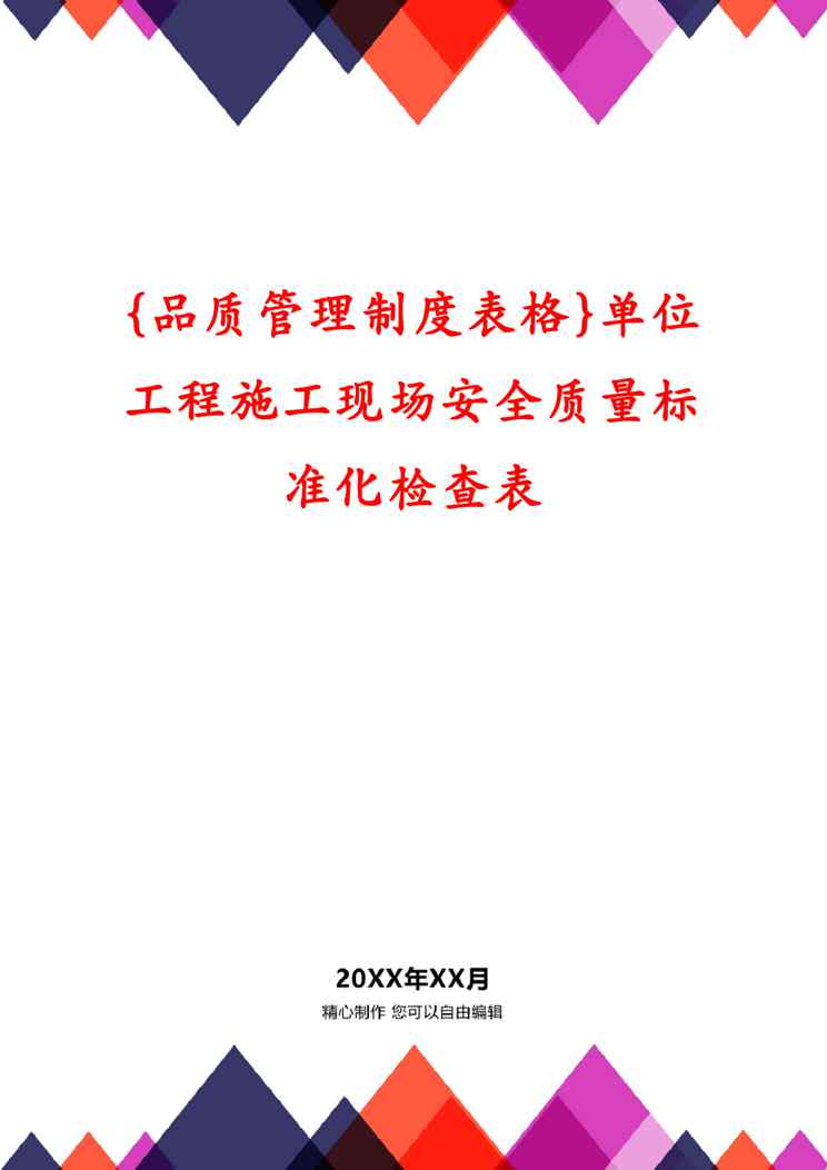 {品质管理制度表格}单位工程施工现场安全质量标准化检查表{品质管理制度表格}单位工程施工现场安全质量标准化检查表{品质管理制度表格}单位工程施工现场安全质量标准化检查表{品质管理制度表格}单位工程施工现场安全质量标准化检查表{品质管理制度表格}单位工程施工现场安全质量标准化检查表