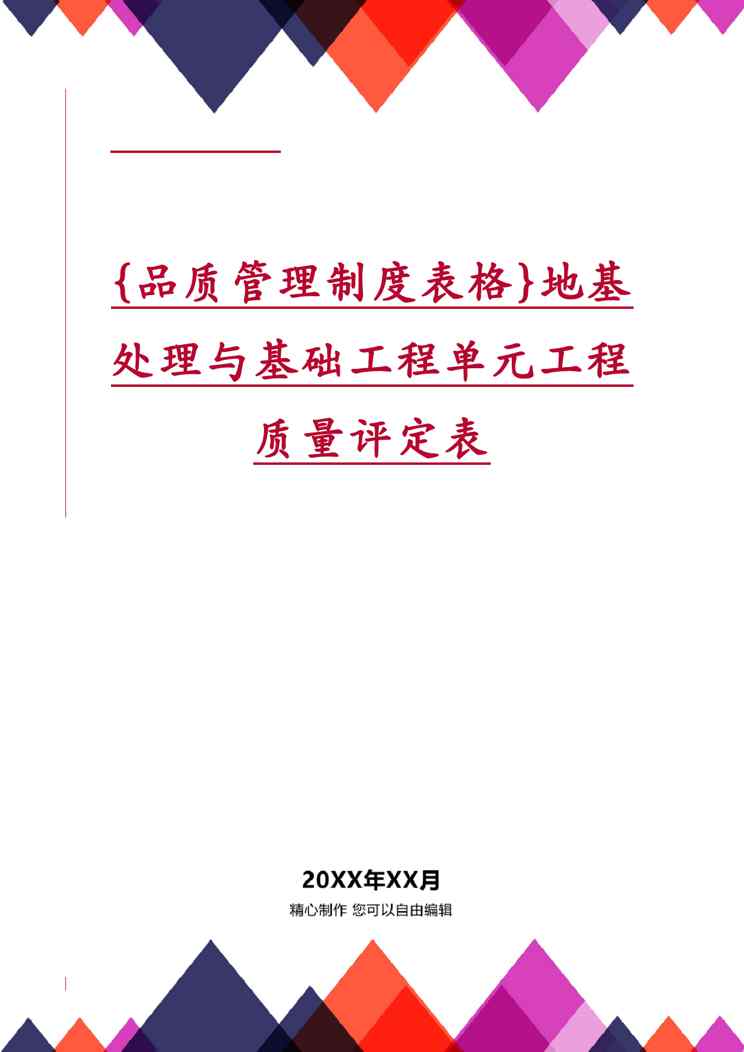 本站资深用户发布了最新的《{品质管理制度表格}地基处理与基础工程单元工程质量评定表》文档,以下内容为预览,详细内容可下载阅读。 声明:本站所有文章,如无特殊说明或标注,均为本站原创发布。任何个人或组织,在未征得本站同意时,禁止复制、盗用、采集、发布本站内容到任何网站、书籍等各类媒体平台。如若本站内容侵犯了原著者的合法权益,可联系我们进行处理。