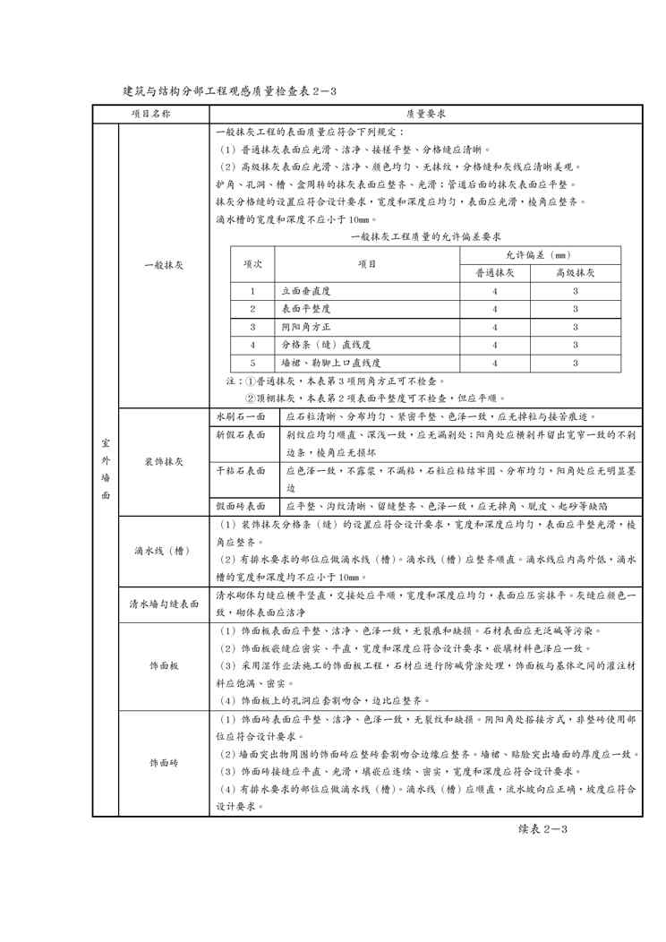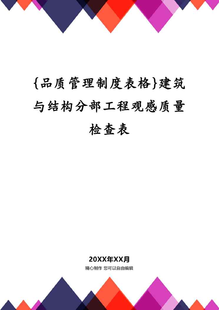 本站资深用户发布了最新的《{品质管理制度表格}建筑与结构分部工程观感质量检查表》文档,以下内容为预览,详细内容可下载阅读。 声明:本站所有文章,如无特殊说明或标注,均为本站原创发布。任何个人或组织,在未征得本站同意时,禁止复制、盗用、采集、发布本站内容到任何网站、书籍等各类媒体平台。如若本站内容侵犯了原著者的合法权益,可联系我们进行处理。