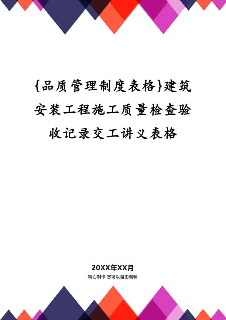 不久前,最新文档《{品质管理制度表格}建筑安装工程施工质量检查验收记录交工讲义表格》全文正式在本站发布,感兴趣的用户可以下载阅读。 声明:本站所有文章,如无特殊说明或标注,均为本站原创发布。任何个人或组织,在未征得本站同意时,禁止复制、盗用、采集、发布本站内容到任何网站、书籍等各类媒体平台。如若本站内容侵犯了原著者的合法权益,可联系我们进行处理。