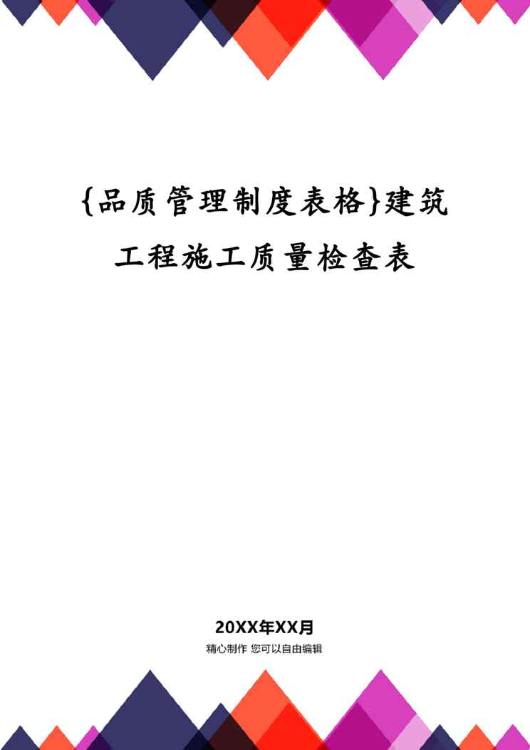 本站资深用户发布了最新的《{品质管理制度表格}建筑工程施工质量检查表》文档,以下内容为预览,详细内容可下载阅读。 声明:本站所有文章,如无特殊说明或标注,均为本站原创发布。任何个人或组织,在未征得本站同意时,禁止复制、盗用、采集、发布本站内容到任何网站、书籍等各类媒体平台。如若本站内容侵犯了原著者的合法权益,可联系我们进行处理。
