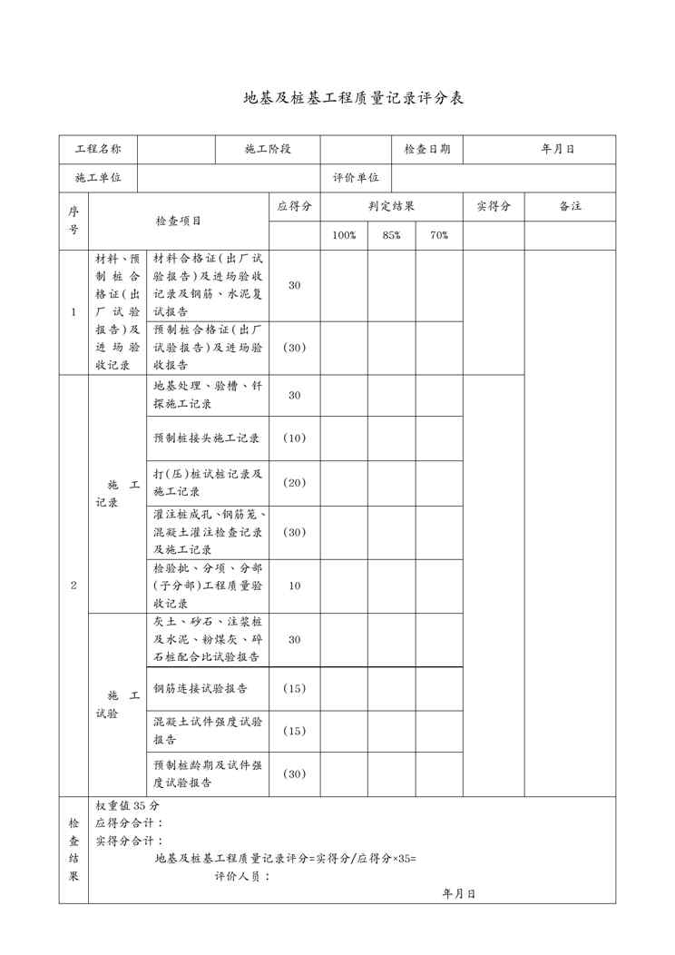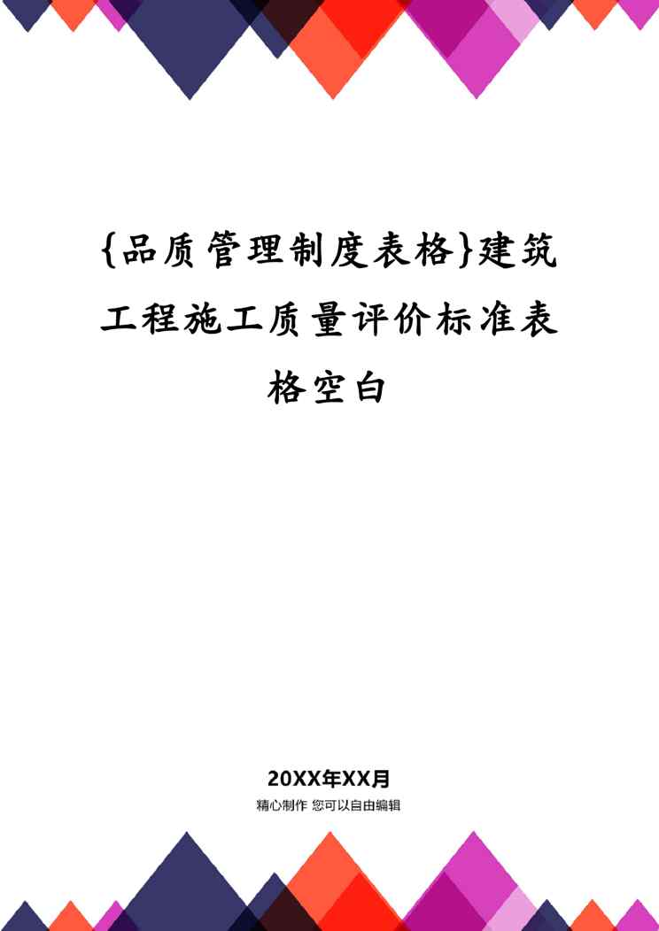 本站资深用户发布了最新的《{品质管理制度表格}建筑工程施工质量评价标准表格空白》文档,以下内容为预览,详细内容可下载阅读。 声明:本站所有文章,如无特殊说明或标注,均为本站原创发布。任何个人或组织,在未征得本站同意时,禁止复制、盗用、采集、发布本站内容到任何网站、书籍等各类媒体平台。如若本站内容侵犯了原著者的合法权益,可联系我们进行处理。