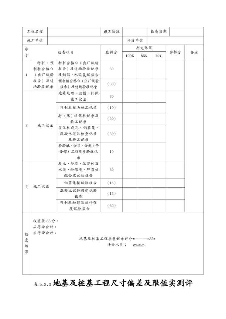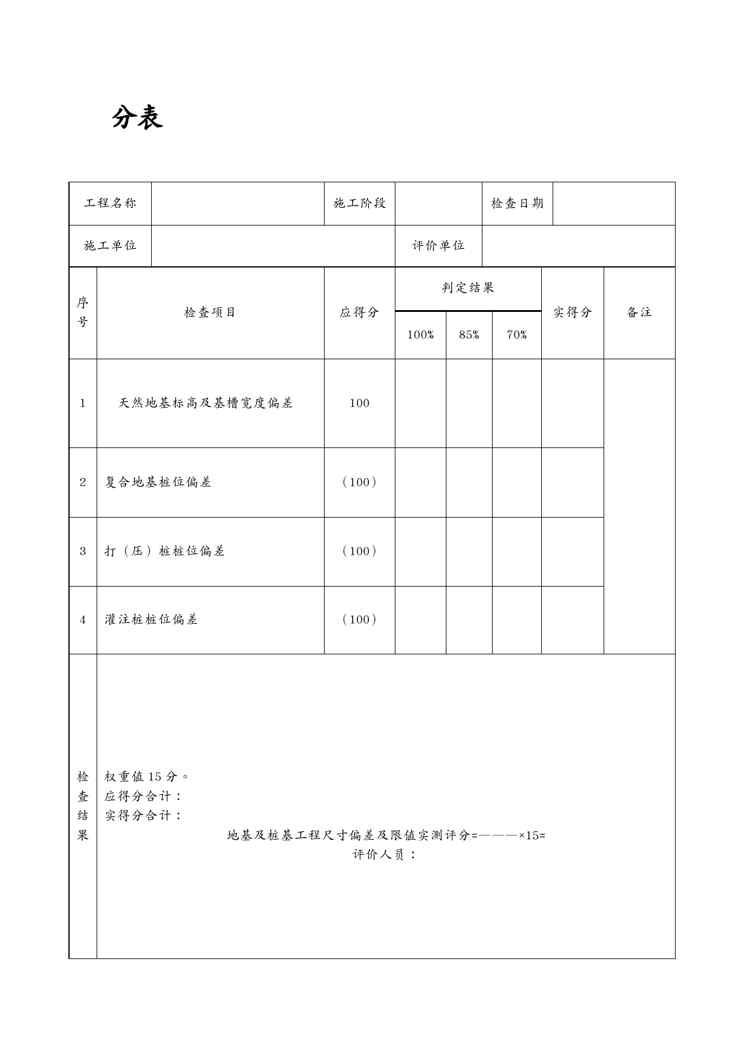 本站资深用户发布了最新的《{品质管理制度表格}建筑工程施工质量评价标准评分表格》文档,以下内容为预览,详细内容可下载阅读。 声明:本站所有文章,如无特殊说明或标注,均为本站原创发布。任何个人或组织,在未征得本站同意时,禁止复制、盗用、采集、发布本站内容到任何网站、书籍等各类媒体平台。如若本站内容侵犯了原著者的合法权益,可联系我们进行处理。