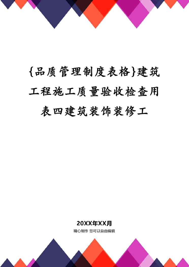 {品质管理制度表格}建筑工程施工质量验收检查用表四建筑装饰装修工{品质管理制度表格}建筑工程施工质量验收检查用表四建筑装饰装修工{品质管理制度表格}建筑工程施工质量验收检查用表四建筑装饰装修工{品质管理制度表格}建筑工程施工质量验收检查用表四建筑装饰装修工{品质管理制度表格}建筑工程施工质量验收检查用表四建筑装饰装修工