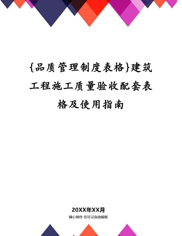 本站正式发布了《{品质管理制度表格}建筑工程施工质量验收配套表格及使用指南》文档,文档详细内容可下载阅读。 声明:本站所有文章,如无特殊说明或标注,均为本站原创发布。任何个人或组织,在未征得本站同意时,禁止复制、盗用、采集、发布本站内容到任何网站、书籍等各类媒体平台。如若本站内容侵犯了原著者的合法权益,可联系我们进行处理。