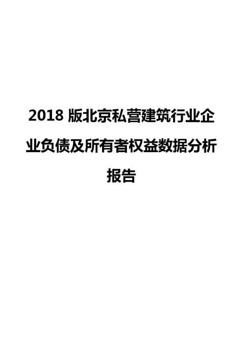 本站资深用户发布了最新的《2018版北京私营建筑行业企业负债及所有者权益数据分析报告》文档,以下内容为预览,详细内容可下载阅读。 声明:本站所有文章,如无特殊说明或标注,均为本站原创发布。任何个人或组织,在未征得本站同意时,禁止复制、盗用、采集、发布本站内容到任何网站、书籍等各类媒体平台。如若本站内容侵犯了原著者的合法权益,可联系我们进行处理。