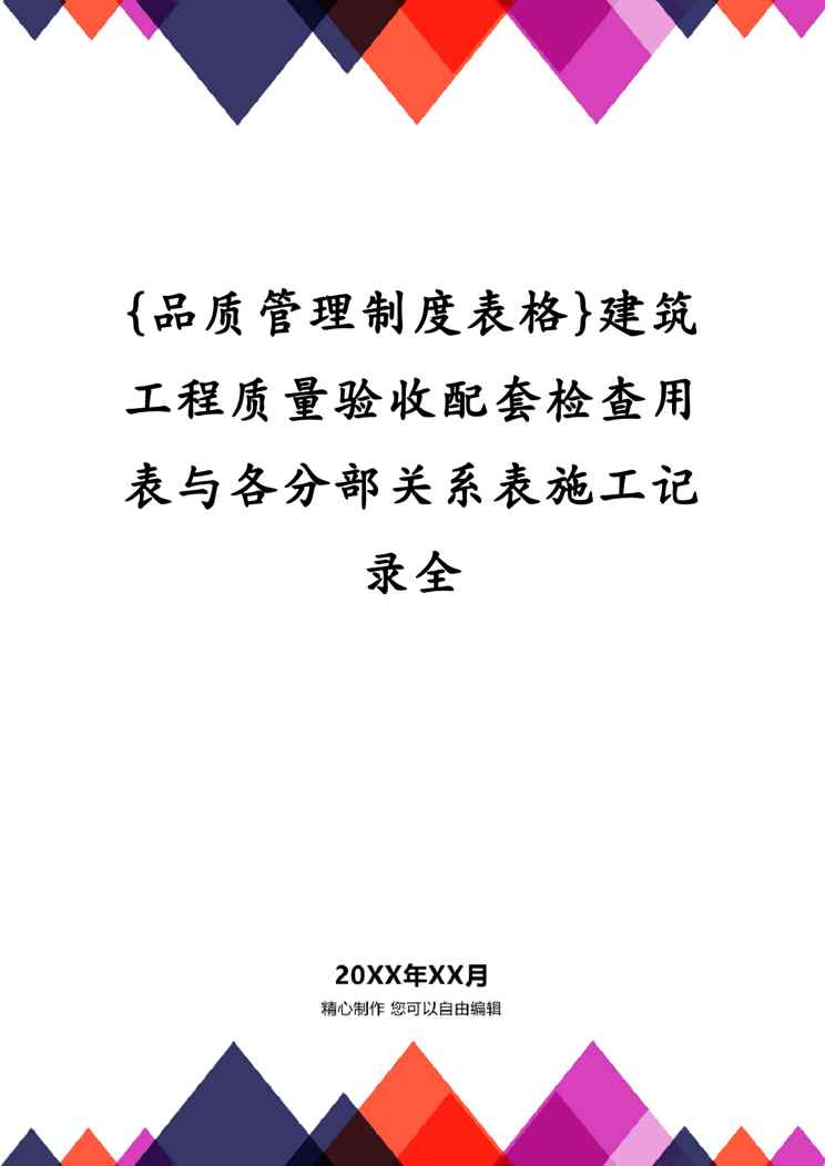 本站资深用户发布了最新的《{品质管理制度表格}建筑工程质量验收配套检查用表与各分部关系表施工记录全》文档,以下内容为预览,详细内容可下载阅读。 声明:本站所有文章,如无特殊说明或标注,均为本站原创发布。任何个人或组织,在未征得本站同意时,禁止复制、盗用、采集、发布本站内容到任何网站、书籍等各类媒体平台。如若本站内容侵犯了原著者的合法权益,可联系我们进行处理。