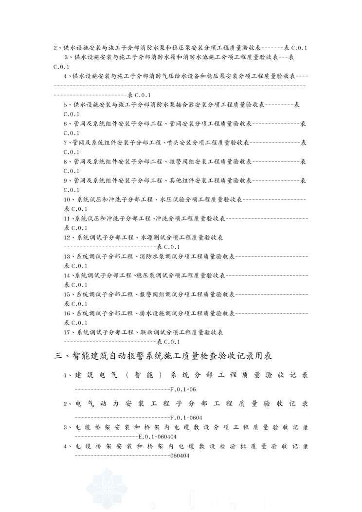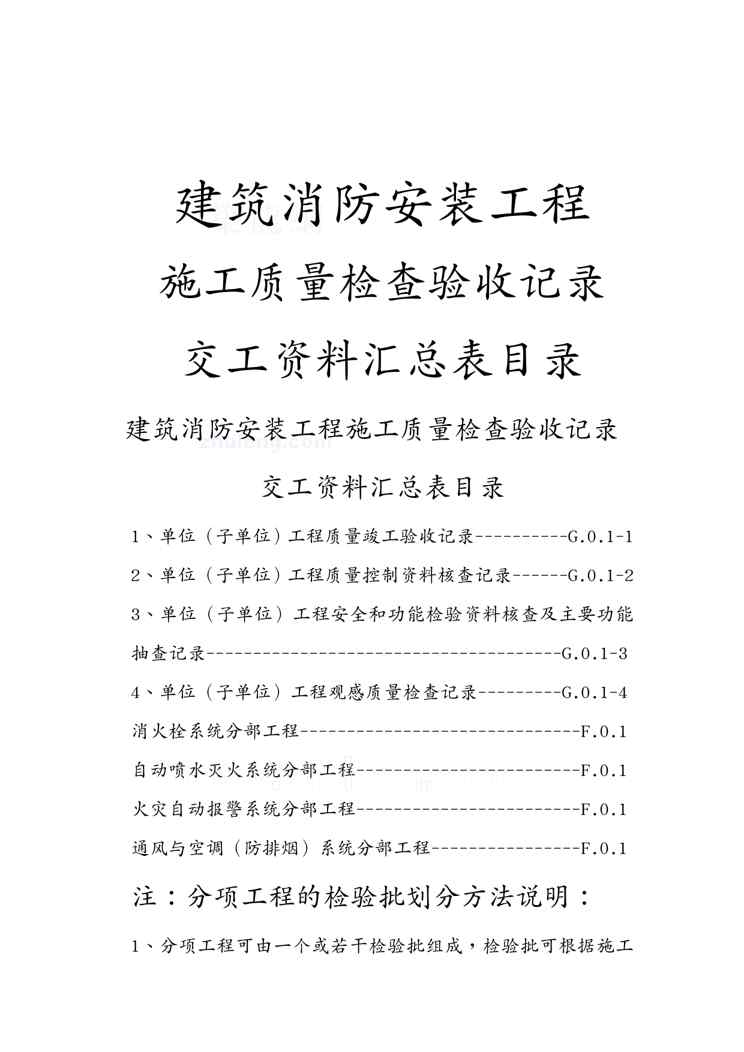 本站正式发布了《{品质管理制度表格}建筑消防安装工程施工质量检查验收记录交工讲义表格》文档,文档详细内容可下载阅读。 声明:本站所有文章,如无特殊说明或标注,均为本站原创发布。任何个人或组织,在未征得本站同意时,禁止复制、盗用、采集、发布本站内容到任何网站、书籍等各类媒体平台。如若本站内容侵犯了原著者的合法权益,可联系我们进行处理。