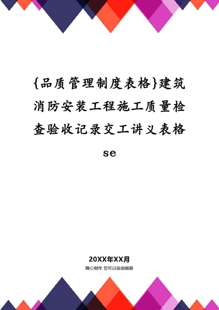 本站正式发布了《{品质管理制度表格}建筑消防安装工程施工质量检查验收记录交工讲义表格se》文档,文档详细内容可下载阅读。 声明:本站所有文章,如无特殊说明或标注,均为本站原创发布。任何个人或组织,在未征得本站同意时,禁止复制、盗用、采集、发布本站内容到任何网站、书籍等各类媒体平台。如若本站内容侵犯了原著者的合法权益,可联系我们进行处理。