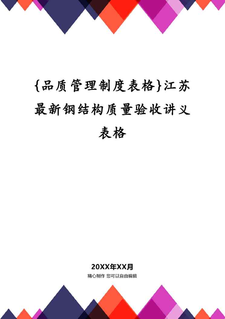 不久前,最新文档《{品质管理制度表格}江苏最新钢结构质量验收讲义表格》全文正式在本站发布,感兴趣的用户可以下载阅读。 声明:本站所有文章,如无特殊说明或标注,均为本站原创发布。任何个人或组织,在未征得本站同意时,禁止复制、盗用、采集、发布本站内容到任何网站、书籍等各类媒体平台。如若本站内容侵犯了原著者的合法权益,可联系我们进行处理。