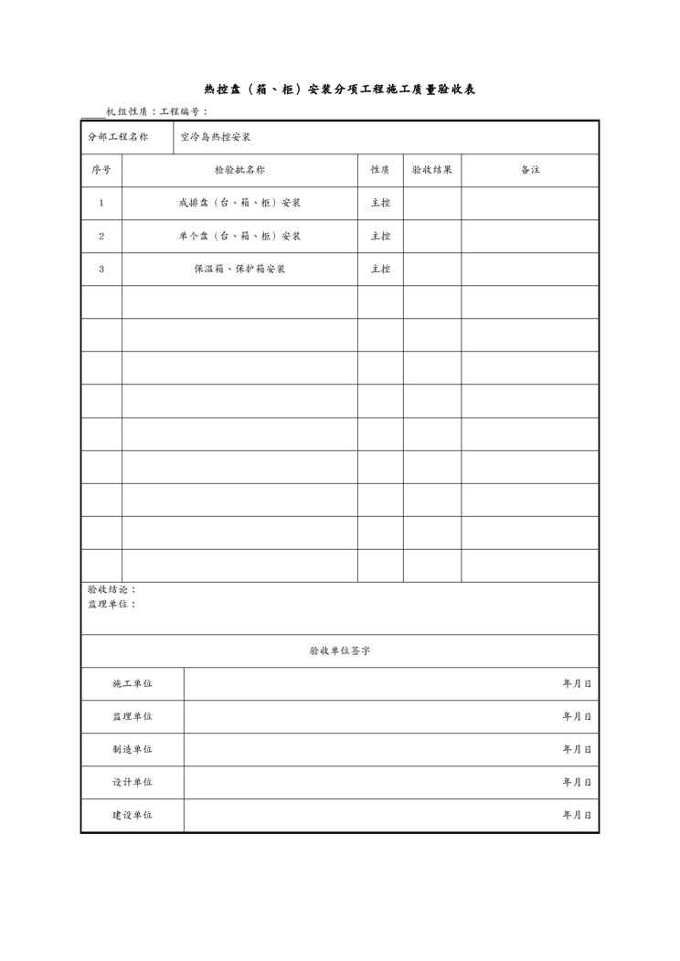 {品质管理制度表格}空冷岛热控安装分部工程施工质量验收表{品质管理制度表格}空冷岛热控安装分部工程施工质量验收表{品质管理制度表格}空冷岛热控安装分部工程施工质量验收表{品质管理制度表格}空冷岛热控安装分部工程施工质量验收表{品质管理制度表格}空冷岛热控安装分部工程施工质量验收表