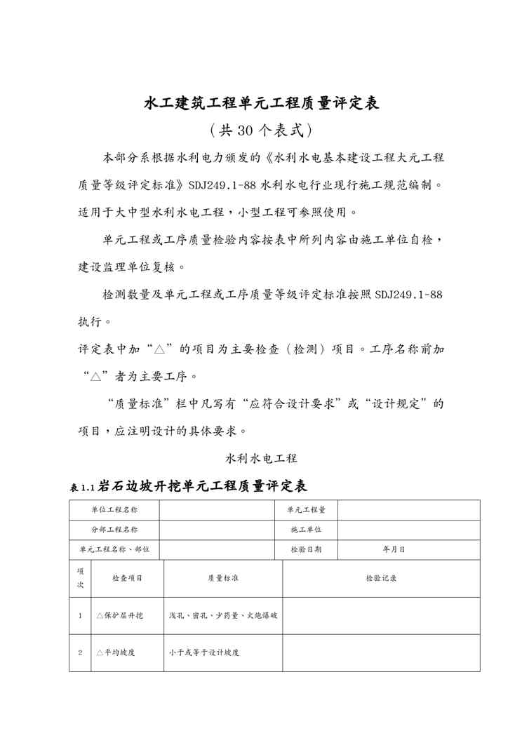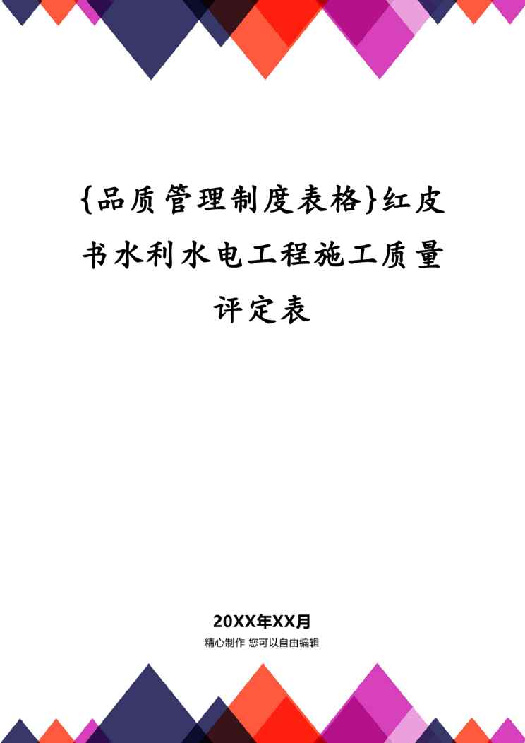 本站资深用户发布了最新的《{品质管理制度表格}红皮书水利水电工程施工质量评定表》文档,以下内容为预览,详细内容可下载阅读。 声明:本站所有文章,如无特殊说明或标注,均为本站原创发布。任何个人或组织,在未征得本站同意时,禁止复制、盗用、采集、发布本站内容到任何网站、书籍等各类媒体平台。如若本站内容侵犯了原著者的合法权益,可联系我们进行处理。