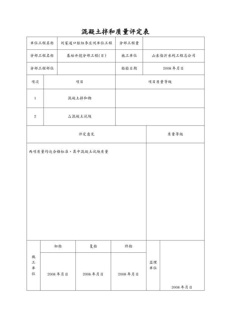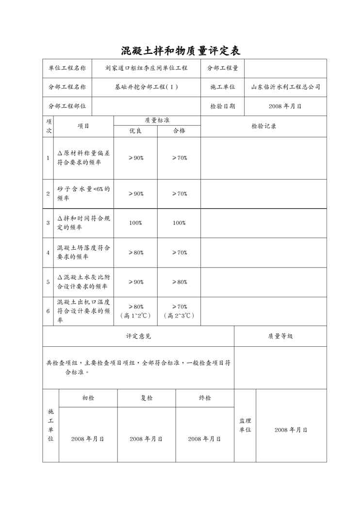 本站资深用户发布了最新的《{品质管理制度表格}表混凝土拌和质量评定表》文档,以下内容为预览,详细内容可下载阅读。 声明:本站所有文章,如无特殊说明或标注,均为本站原创发布。任何个人或组织,在未征得本站同意时,禁止复制、盗用、采集、发布本站内容到任何网站、书籍等各类媒体平台。如若本站内容侵犯了原著者的合法权益,可联系我们进行处理。
