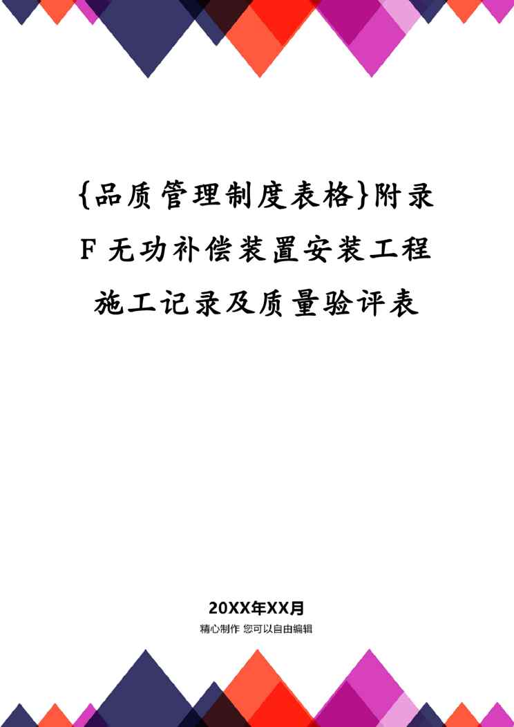 不久前,最新文档《{品质管理制度表格}附录F无功补偿装置安装工程施工记录及质量验评表》全文正式在本站发布,感兴趣的用户可以下载阅读。 声明:本站所有文章,如无特殊说明或标注,均为本站原创发布。任何个人或组织,在未征得本站同意时,禁止复制、盗用、采集、发布本站内容到任何网站、书籍等各类媒体平台。如若本站内容侵犯了原著者的合法权益,可联系我们进行处理。