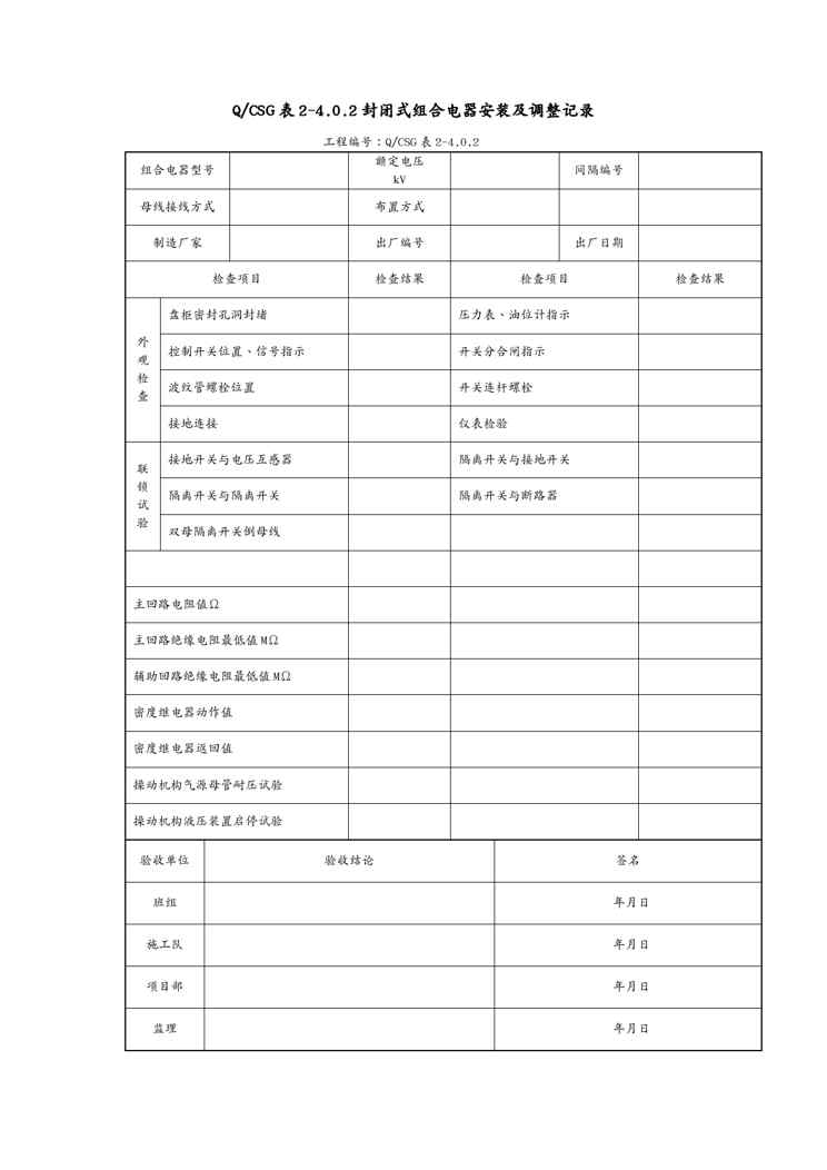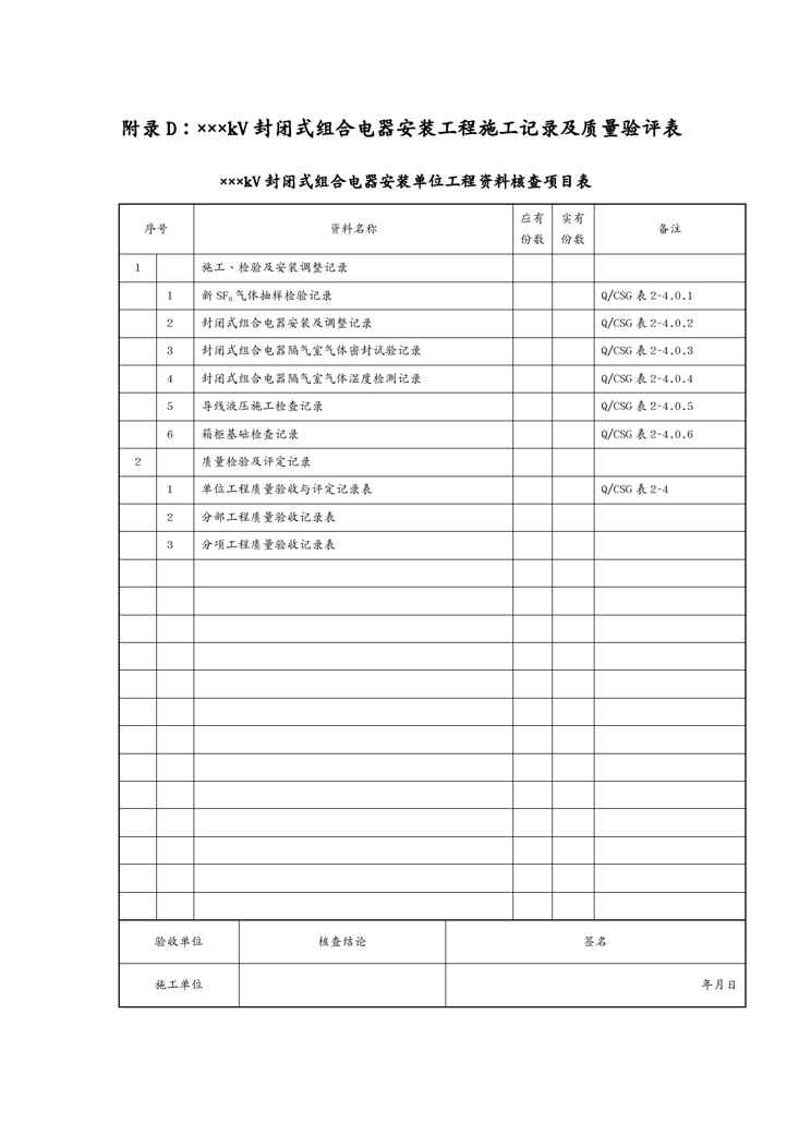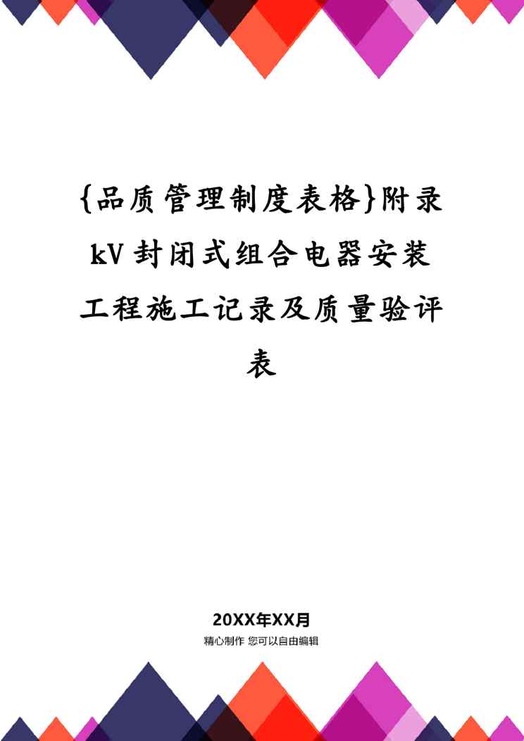 {品质管理制度表格}附录kV封闭式组合电器安装工程施工记录及质量验评表{品质管理制度表格}附录kV封闭式组合电器安装工程施工记录及质量验评表{品质管理制度表格}附录kV封闭式组合电器安装工程施工记录及质量验评表{品质管理制度表格}附录kV封闭式组合电器安装工程施工记录及质量验评表{品质管理制度表格}附录kV封闭式组合电器安装工程施工记录及质量验评表