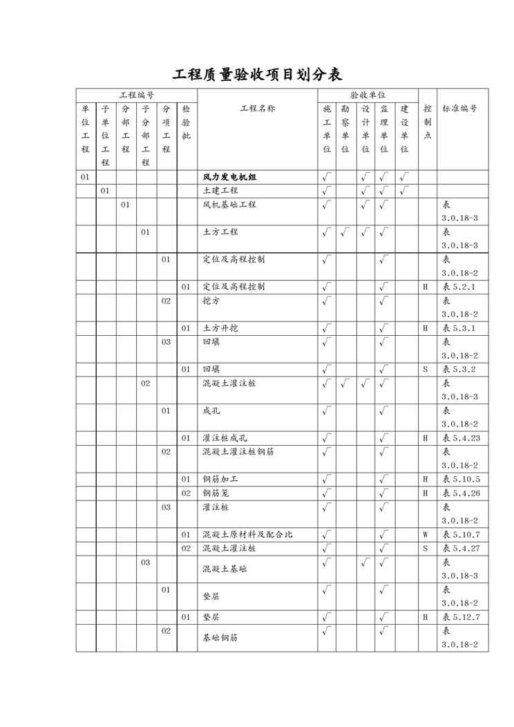 本站正式发布了《{品质管理制度表格}风电场工程施工质量验收项目划分表》文档,文档详细内容可下载阅读。 声明:本站所有文章,如无特殊说明或标注,均为本站原创发布。任何个人或组织,在未征得本站同意时,禁止复制、盗用、采集、发布本站内容到任何网站、书籍等各类媒体平台。如若本站内容侵犯了原著者的合法权益,可联系我们进行处理。