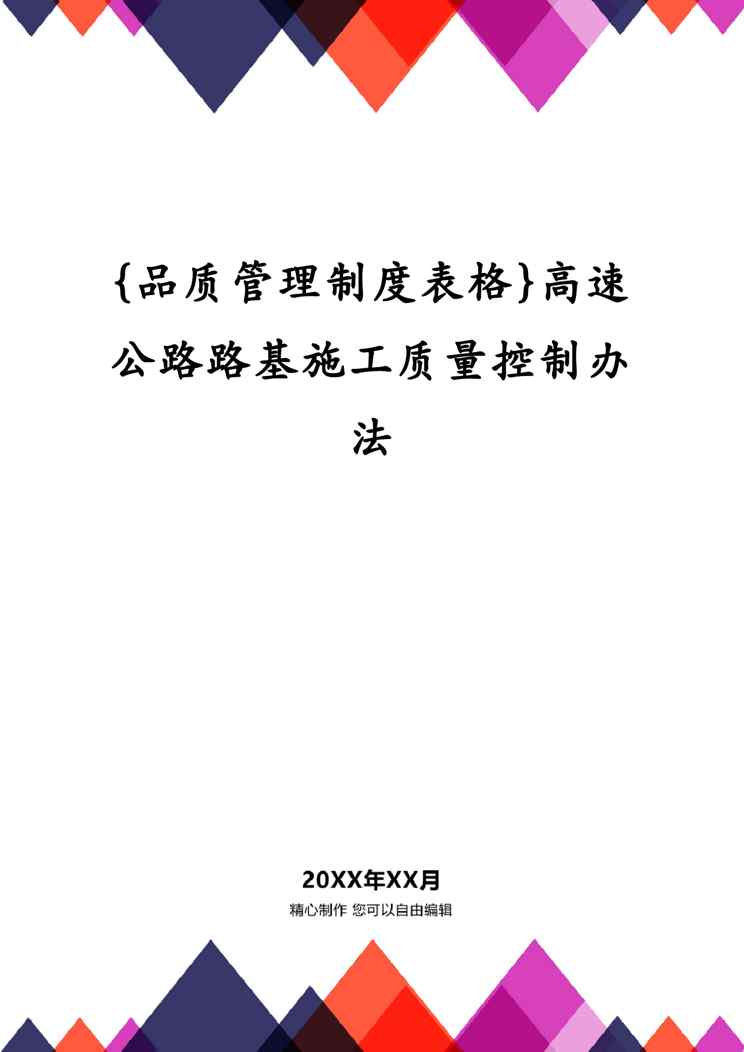 本站正式发布了《{品质管理制度表格}高速公路路基施工质量控制办法》文档,文档详细内容可下载阅读。 声明:本站所有文章,如无特殊说明或标注,均为本站原创发布。任何个人或组织,在未征得本站同意时,禁止复制、盗用、采集、发布本站内容到任何网站、书籍等各类媒体平台。如若本站内容侵犯了原著者的合法权益,可联系我们进行处理。
