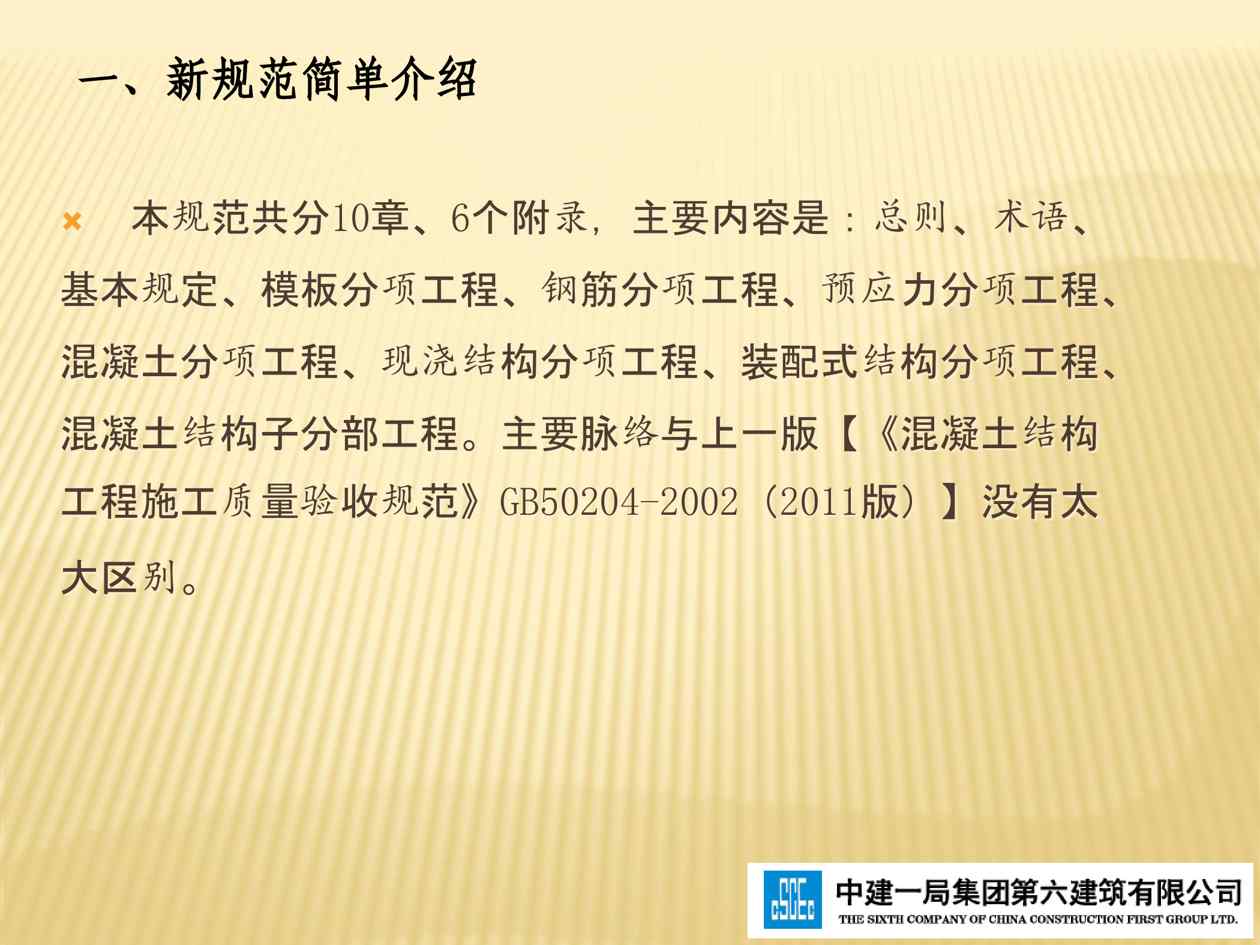 本站资深用户发布了最新的《{品质管理品质培训}混凝土结构工程施工质量验收规范》培训讲义》文档,以下内容为预览,详细内容可下载阅读。 声明:本站所有文章,如无特殊说明或标注,均为本站原创发布。任何个人或组织,在未征得本站同意时,禁止复制、盗用、采集、发布本站内容到任何网站、书籍等各类媒体平台。如若本站内容侵犯了原著者的合法权益,可联系我们进行处理。