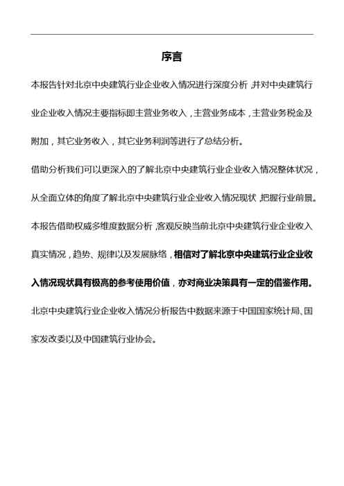 本站正式发布了《2018版北京中央建筑行业企业收入情况分析报告》文档,文档详细内容可下载阅读。 声明:本站所有文章,如无特殊说明或标注,均为本站原创发布。任何个人或组织,在未征得本站同意时,禁止复制、盗用、采集、发布本站内容到任何网站、书籍等各类媒体平台。如若本站内容侵犯了原著者的合法权益,可联系我们进行处理。