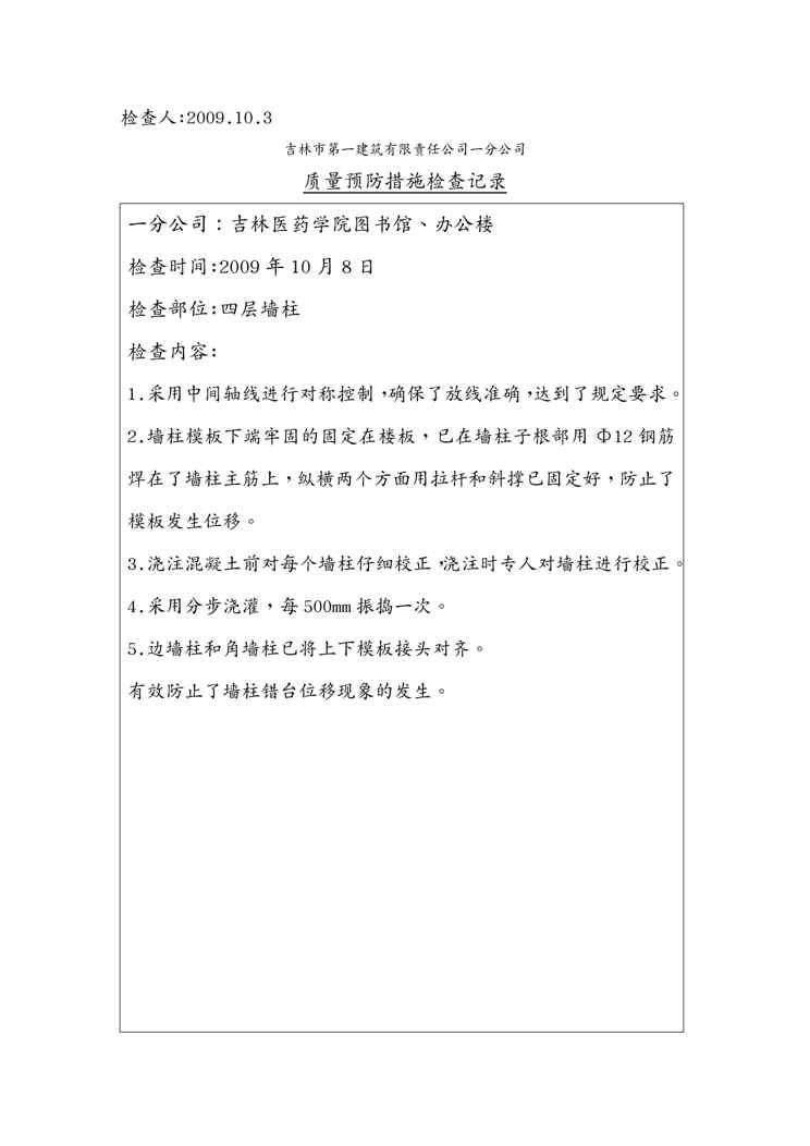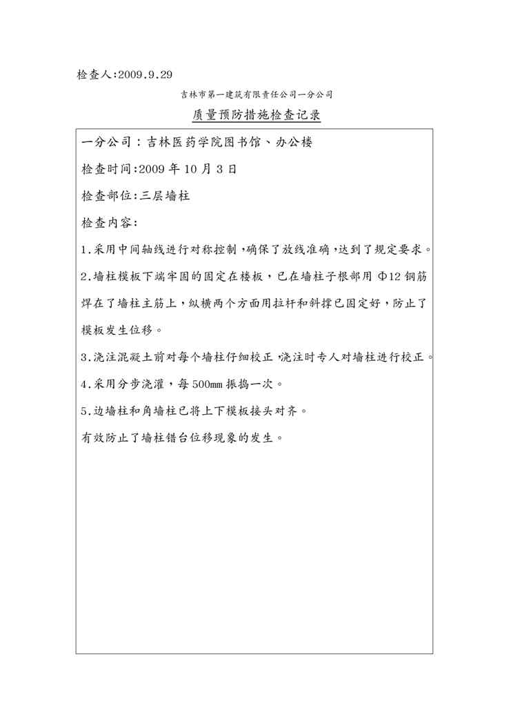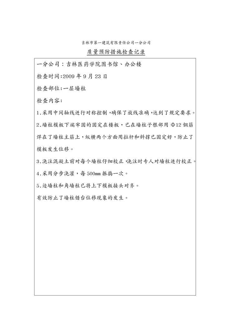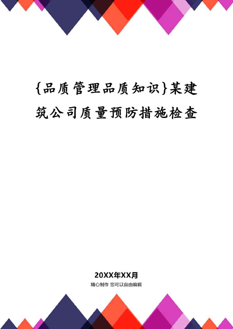 本站正式发布了《{品质管理品质知识}某建筑公司质量预防措施检查》文档,文档详细内容可下载阅读。 声明:本站所有文章,如无特殊说明或标注,均为本站原创发布。任何个人或组织,在未征得本站同意时,禁止复制、盗用、采集、发布本站内容到任何网站、书籍等各类媒体平台。如若本站内容侵犯了原著者的合法权益,可联系我们进行处理。