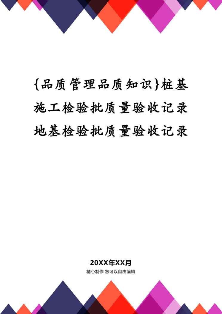 不久前,最新文档《{品质管理品质知识}桩基施工检验批质量验收记录地基检验批质量验收记录》全文正式在本站发布,感兴趣的用户可以下载阅读。 声明:本站所有文章,如无特殊说明或标注,均为本站原创发布。任何个人或组织,在未征得本站同意时,禁止复制、盗用、采集、发布本站内容到任何网站、书籍等各类媒体平台。如若本站内容侵犯了原著者的合法权益,可联系我们进行处理。