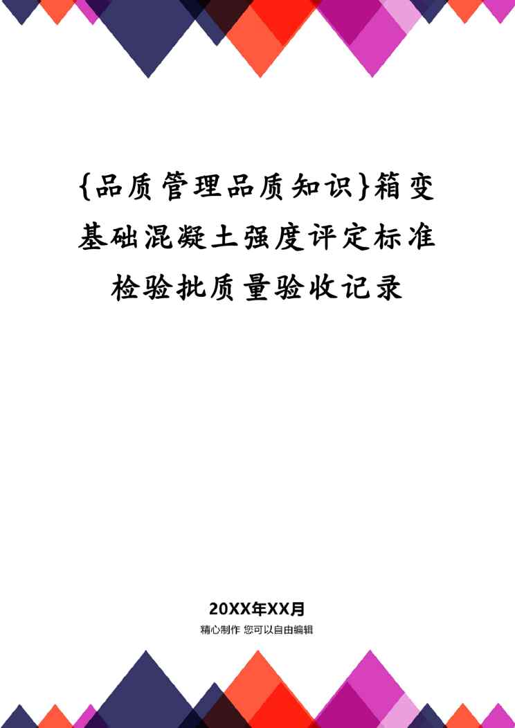 不久前,最新文档《{品质管理品质知识}箱变基础混凝土强度评定标准检验批质量验收记录》全文正式在本站发布,感兴趣的用户可以下载阅读。 声明:本站所有文章,如无特殊说明或标注,均为本站原创发布。任何个人或组织,在未征得本站同意时,禁止复制、盗用、采集、发布本站内容到任何网站、书籍等各类媒体平台。如若本站内容侵犯了原著者的合法权益,可联系我们进行处理。
