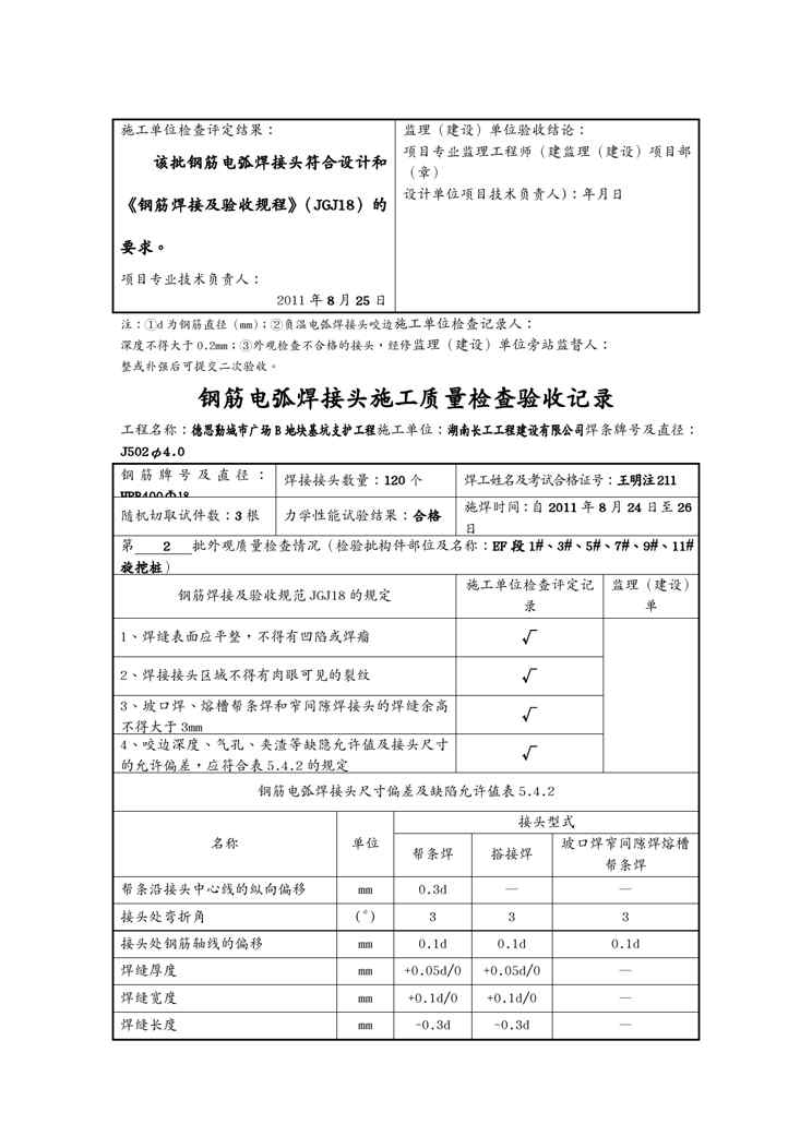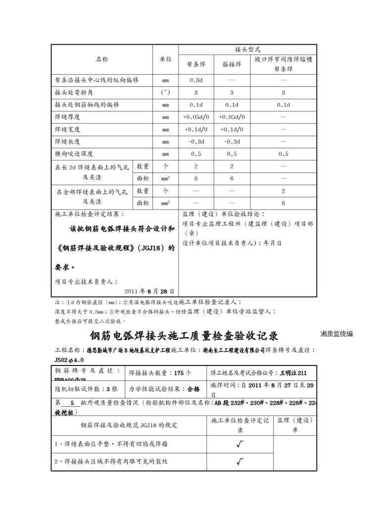 本站资深用户发布了最新的《{品质管理品质知识}钢筋电弧焊接头施工质量检查验收记录》文档,以下内容为预览,详细内容可下载阅读。 声明:本站所有文章,如无特殊说明或标注,均为本站原创发布。任何个人或组织,在未征得本站同意时,禁止复制、盗用、采集、发布本站内容到任何网站、书籍等各类媒体平台。如若本站内容侵犯了原著者的合法权益,可联系我们进行处理。