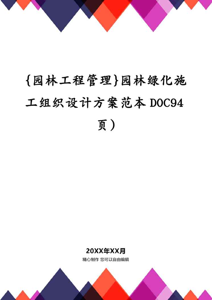 本站资深用户发布了最新的《{园林工程管理}园林绿化施工组织设计方案范本DOC94页)》文档,以下内容为预览,详细内容可下载阅读。 声明:本站所有文章,如无特殊说明或标注,均为本站原创发布。任何个人或组织,在未征得本站同意时,禁止复制、盗用、采集、发布本站内容到任何网站、书籍等各类媒体平台。如若本站内容侵犯了原著者的合法权益,可联系我们进行处理。