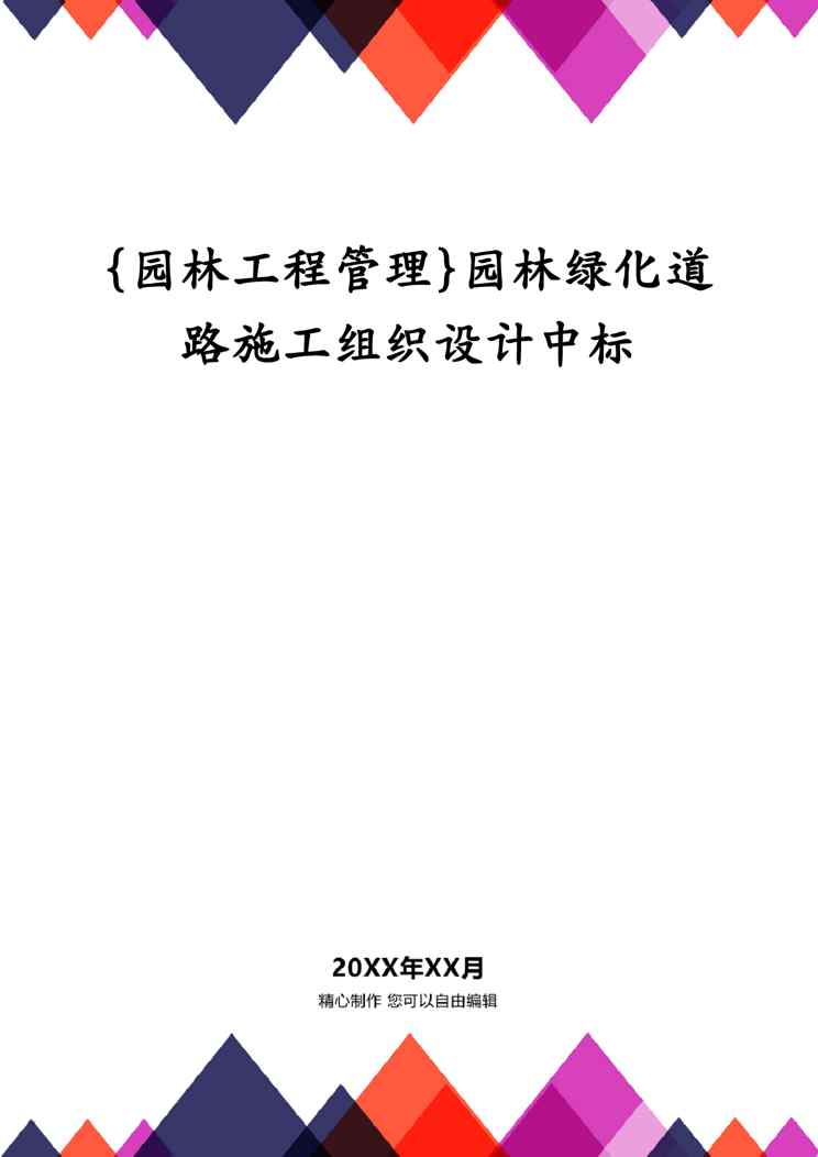 本站资深用户发布了最新的《{园林工程管理}园林绿化道路施工组织设计中标》文档,以下内容为预览,详细内容可下载阅读。 声明:本站所有文章,如无特殊说明或标注,均为本站原创发布。任何个人或组织,在未征得本站同意时,禁止复制、盗用、采集、发布本站内容到任何网站、书籍等各类媒体平台。如若本站内容侵犯了原著者的合法权益,可联系我们进行处理。