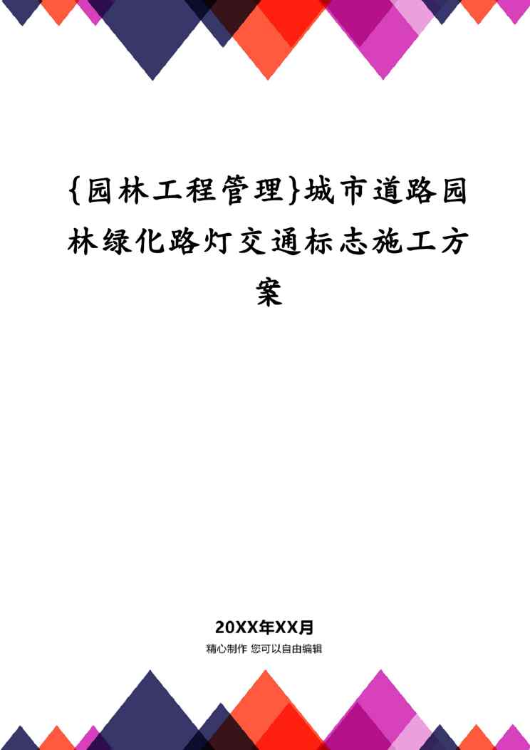 本站正式发布了《{园林工程管理}城市道路园林绿化路灯交通标志施工方案》文档,文档详细内容可下载阅读。 声明:本站所有文章,如无特殊说明或标注,均为本站原创发布。任何个人或组织,在未征得本站同意时,禁止复制、盗用、采集、发布本站内容到任何网站、书籍等各类媒体平台。如若本站内容侵犯了原著者的合法权益,可联系我们进行处理。