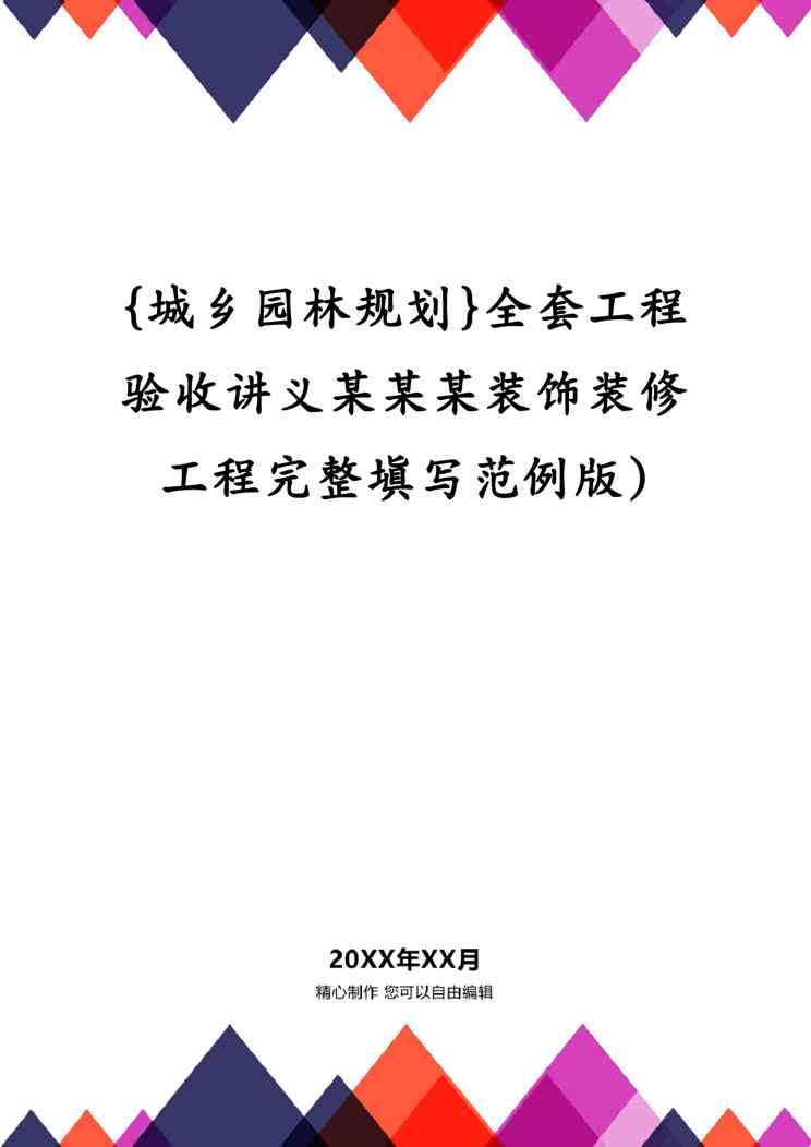 不久前,最新文档《{城乡园林规划}全套工程验收讲义某某某装饰装修工程完整填写范例版)》全文正式在本站发布,感兴趣的用户可以下载阅读。 声明:本站所有文章,如无特殊说明或标注,均为本站原创发布。任何个人或组织,在未征得本站同意时,禁止复制、盗用、采集、发布本站内容到任何网站、书籍等各类媒体平台。如若本站内容侵犯了原著者的合法权益,可联系我们进行处理。