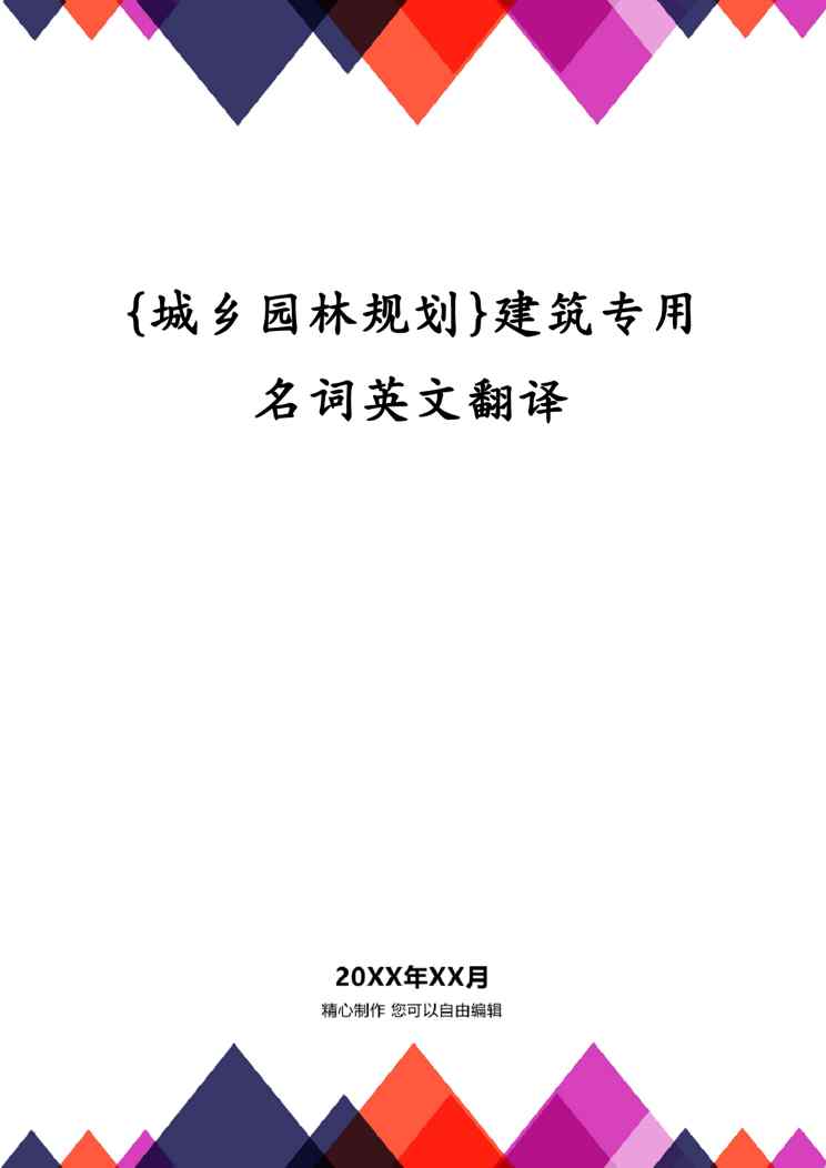本站正式发布了《{城乡园林规划}建筑专用名词英文翻译》文档,文档详细内容可下载阅读。 声明:本站所有文章,如无特殊说明或标注,均为本站原创发布。任何个人或组织,在未征得本站同意时,禁止复制、盗用、采集、发布本站内容到任何网站、书籍等各类媒体平台。如若本站内容侵犯了原著者的合法权益,可联系我们进行处理。