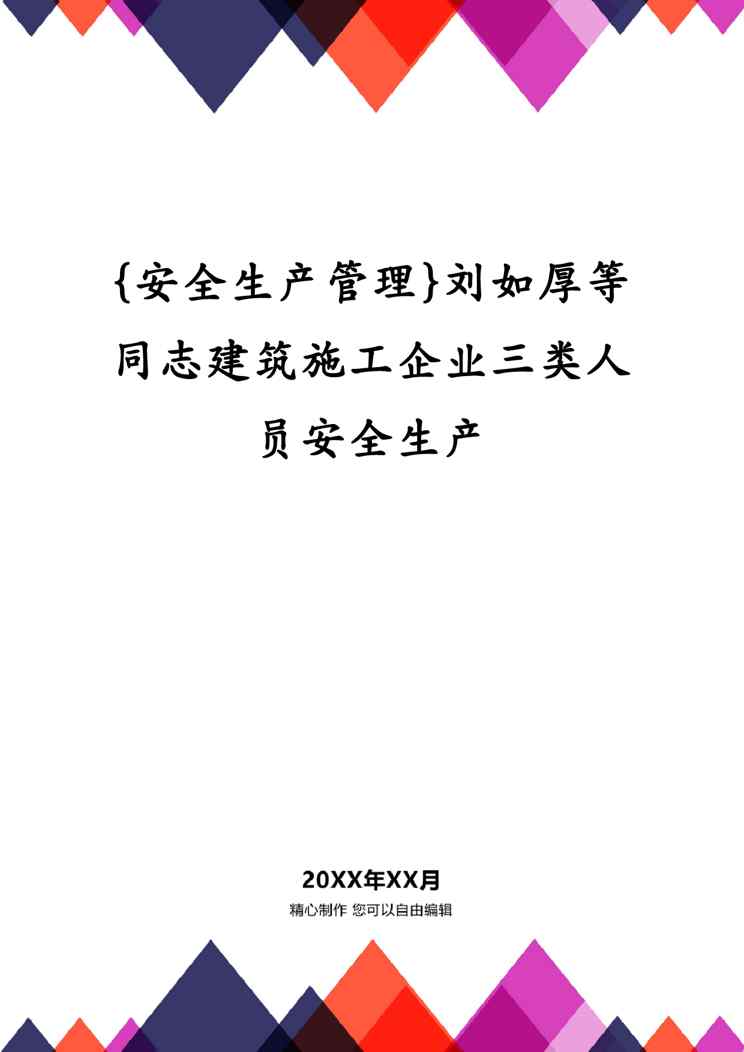 不久前,最新文档《{安全生产管理}刘如厚等同志建筑施工企业三类人员安全生产》全文正式在本站发布,感兴趣的用户可以下载阅读。 声明:本站所有文章,如无特殊说明或标注,均为本站原创发布。任何个人或组织,在未征得本站同意时,禁止复制、盗用、采集、发布本站内容到任何网站、书籍等各类媒体平台。如若本站内容侵犯了原著者的合法权益,可联系我们进行处理。
