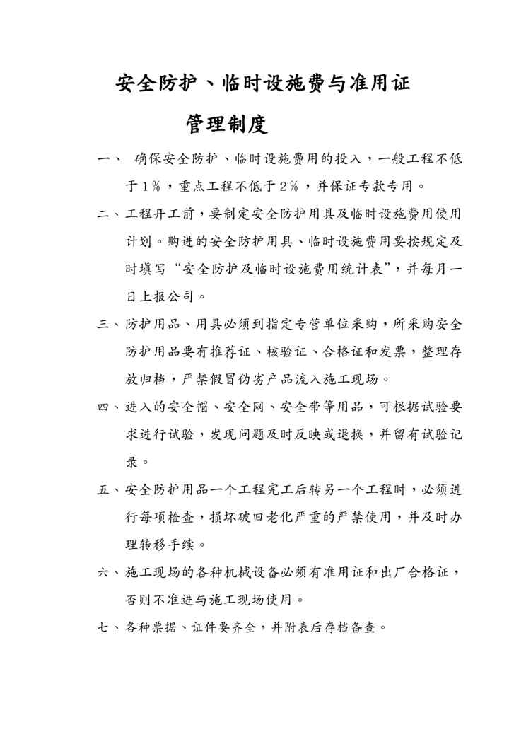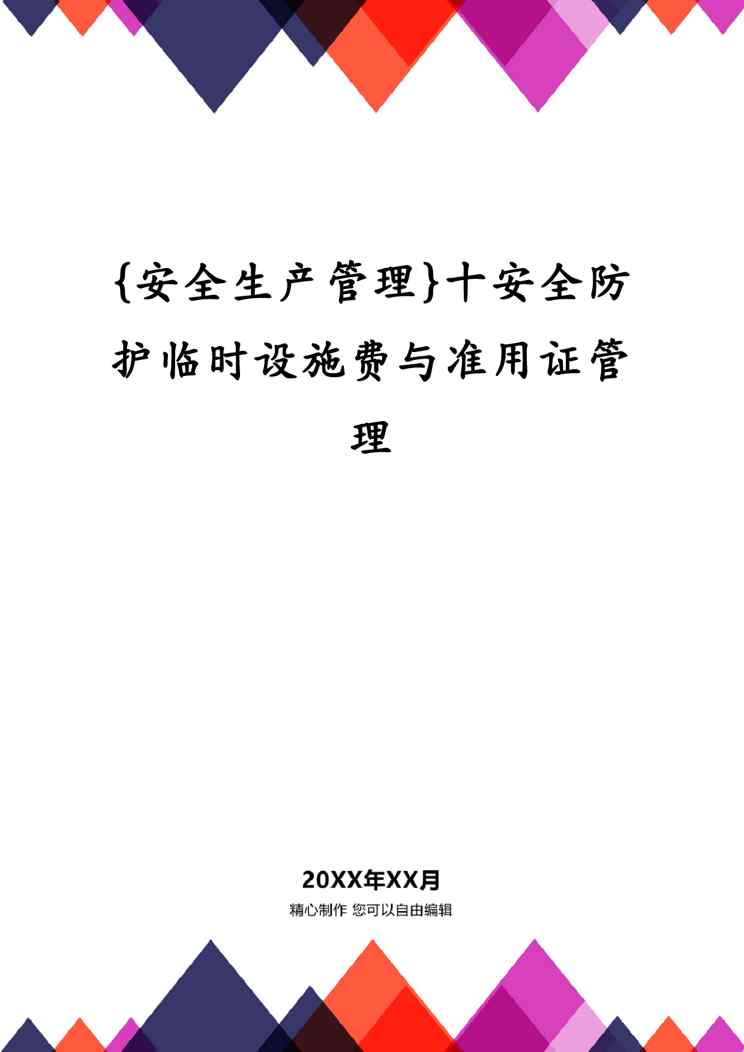 本站资深用户发布了最新的《{安全生产管理}十安全防护临时设施费与准用证管理》文档,以下内容为预览,详细内容可下载阅读。 声明:本站所有文章,如无特殊说明或标注,均为本站原创发布。任何个人或组织,在未征得本站同意时,禁止复制、盗用、采集、发布本站内容到任何网站、书籍等各类媒体平台。如若本站内容侵犯了原著者的合法权益,可联系我们进行处理。