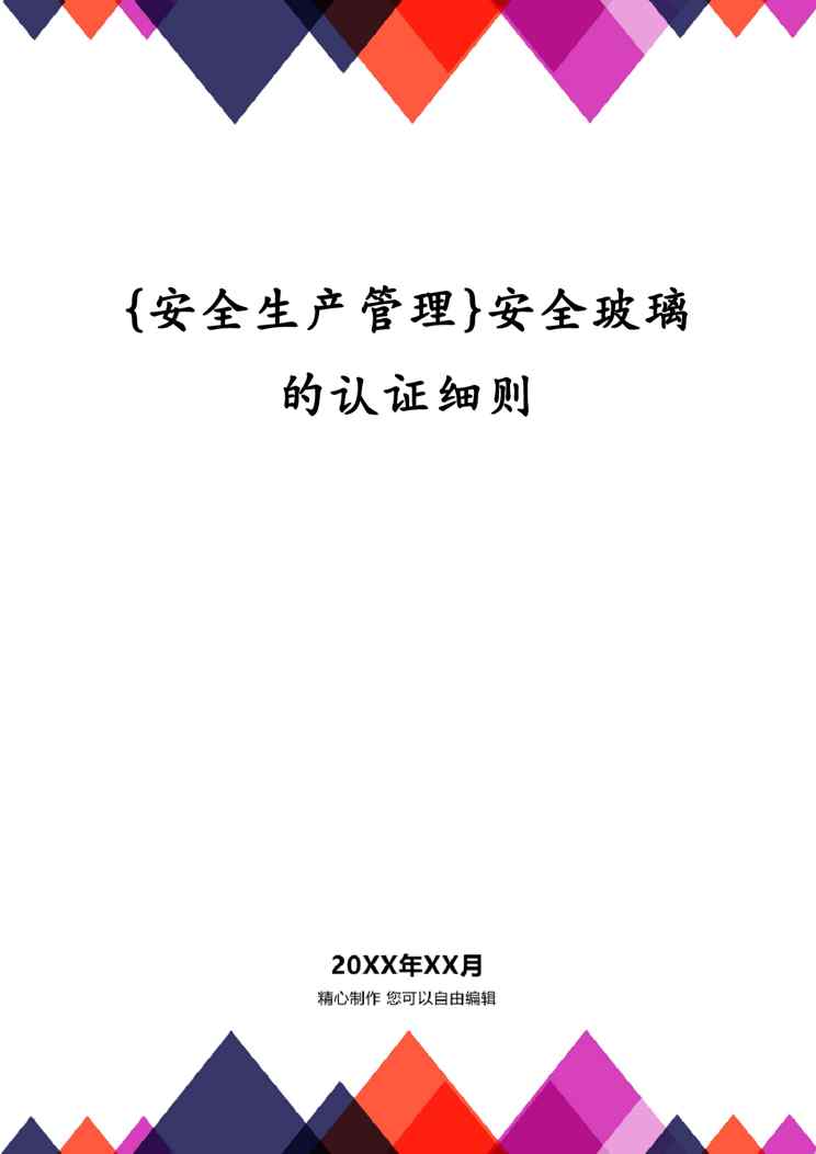 本站正式发布了《{安全生产管理}安全玻璃的认证细则》文档,文档详细内容可下载阅读。 声明:本站所有文章,如无特殊说明或标注,均为本站原创发布。任何个人或组织,在未征得本站同意时,禁止复制、盗用、采集、发布本站内容到任何网站、书籍等各类媒体平台。如若本站内容侵犯了原著者的合法权益,可联系我们进行处理。