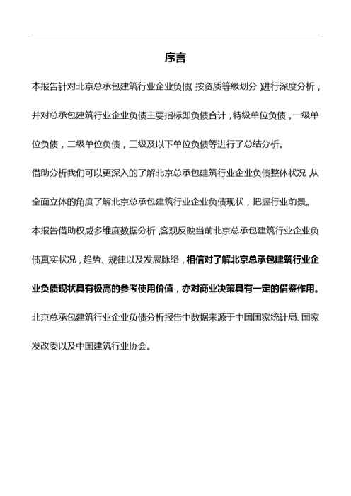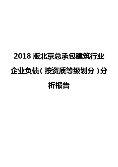 本站资深用户发布了最新的《2018版北京总承包建筑行业企业负债(按资质等级划分)分析报告》文档,以下内容为预览,详细内容可下载阅读。 声明:本站所有文章,如无特殊说明或标注,均为本站原创发布。任何个人或组织,在未征得本站同意时,禁止复制、盗用、采集、发布本站内容到任何网站、书籍等各类媒体平台。如若本站内容侵犯了原著者的合法权益,可联系我们进行处理。