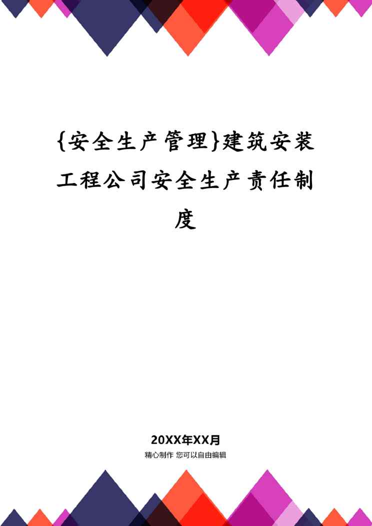 本站资深用户发布了最新的《{安全生产管理}建筑安装工程公司安全生产责任制度》文档,以下内容为预览,详细内容可下载阅读。 声明:本站所有文章,如无特殊说明或标注,均为本站原创发布。任何个人或组织,在未征得本站同意时,禁止复制、盗用、采集、发布本站内容到任何网站、书籍等各类媒体平台。如若本站内容侵犯了原著者的合法权益,可联系我们进行处理。