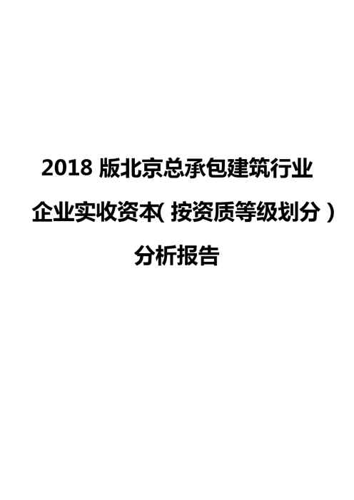 本站正式发布了《2018版北京总承包建筑行业企业实收资本(按资质等级划分)分析报告》文档,文档详细内容可下载阅读。 声明:本站所有文章,如无特殊说明或标注,均为本站原创发布。任何个人或组织,在未征得本站同意时,禁止复制、盗用、采集、发布本站内容到任何网站、书籍等各类媒体平台。如若本站内容侵犯了原著者的合法权益,可联系我们进行处理。