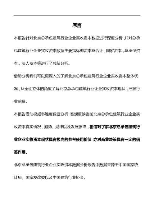 不久前,最新文档《2018版北京总承包建筑行业企业实收资本数据分析报告》全文正式在本站发布,感兴趣的用户可以下载阅读。 声明:本站所有文章,如无特殊说明或标注,均为本站原创发布。任何个人或组织,在未征得本站同意时,禁止复制、盗用、采集、发布本站内容到任何网站、书籍等各类媒体平台。如若本站内容侵犯了原著者的合法权益,可联系我们进行处理。