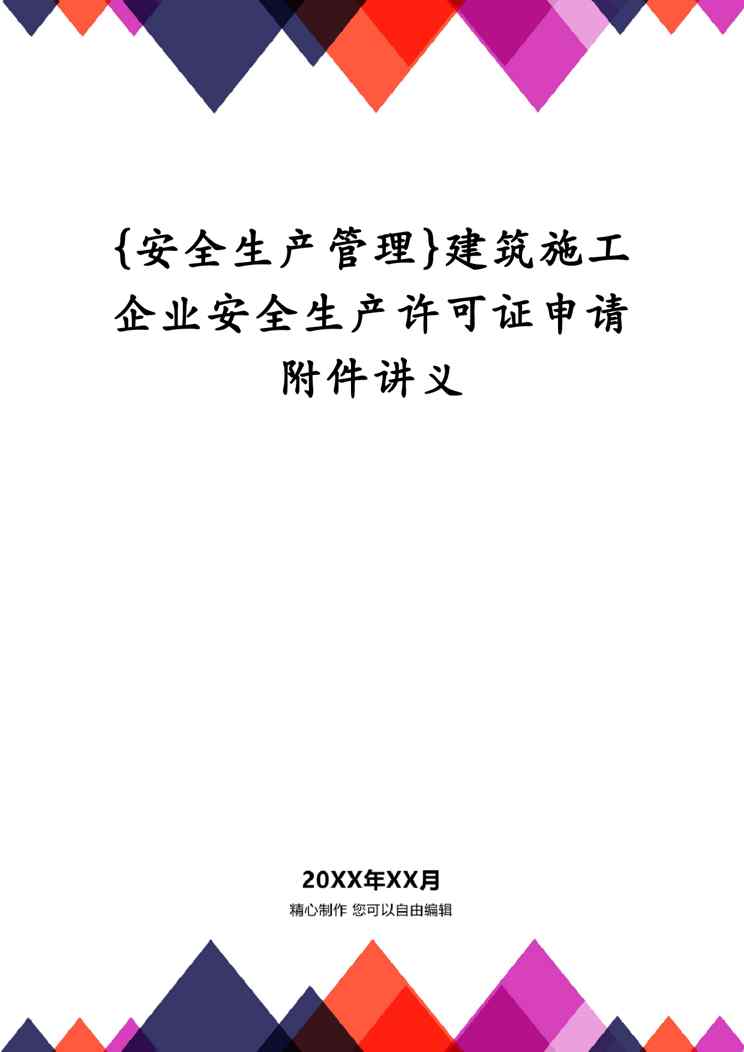 不久前,最新文档《{安全生产管理}建筑施工企业安全生产许可证申请附件讲义》全文正式在本站发布,感兴趣的用户可以下载阅读。 声明:本站所有文章,如无特殊说明或标注,均为本站原创发布。任何个人或组织,在未征得本站同意时,禁止复制、盗用、采集、发布本站内容到任何网站、书籍等各类媒体平台。如若本站内容侵犯了原著者的合法权益,可联系我们进行处理。