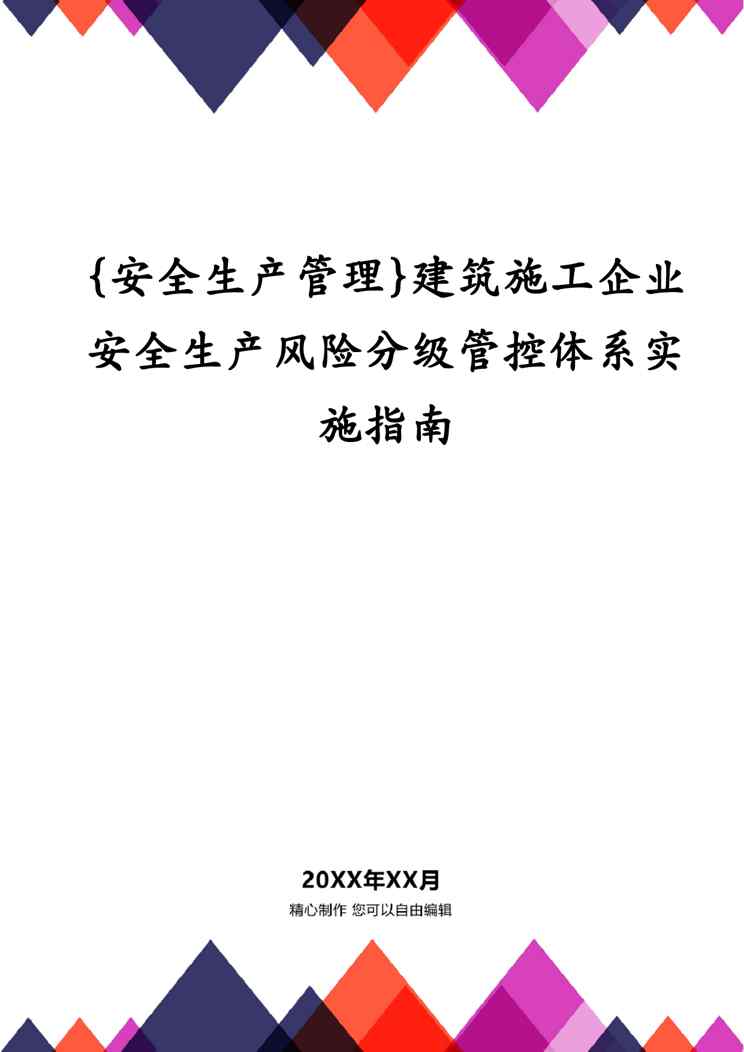 本站资深用户发布了最新的《{安全生产管理}建筑施工企业安全生产风险分级管控体系实施指南》文档,以下内容为预览,详细内容可下载阅读。 声明:本站所有文章,如无特殊说明或标注,均为本站原创发布。任何个人或组织,在未征得本站同意时,禁止复制、盗用、采集、发布本站内容到任何网站、书籍等各类媒体平台。如若本站内容侵犯了原著者的合法权益,可联系我们进行处理。