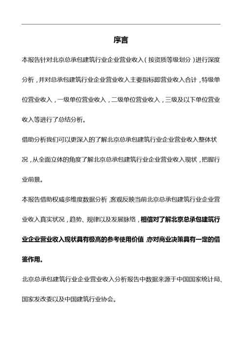 本站正式发布了《2018版北京总承包建筑行业企业营业收入(按资质等级划分)分析报告》文档,文档详细内容可下载阅读。 声明:本站所有文章,如无特殊说明或标注,均为本站原创发布。任何个人或组织,在未征得本站同意时,禁止复制、盗用、采集、发布本站内容到任何网站、书籍等各类媒体平台。如若本站内容侵犯了原著者的合法权益,可联系我们进行处理。