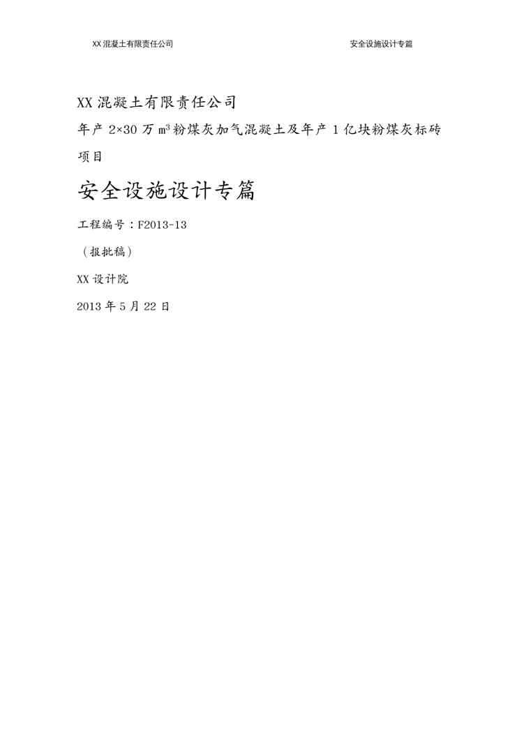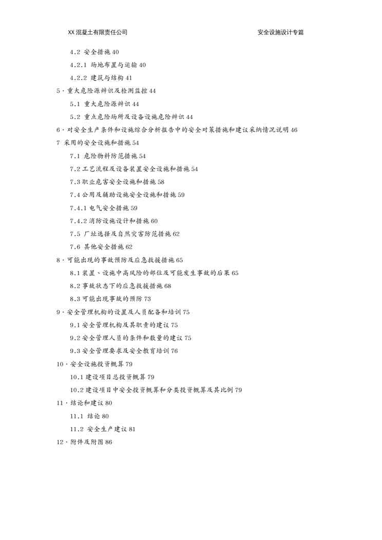 本站资深用户发布了最新的《{安全生产管理}报批稿混凝土有限责任公司安全设施设计专篇》文档,以下内容为预览,详细内容可下载阅读。 声明:本站所有文章,如无特殊说明或标注,均为本站原创发布。任何个人或组织,在未征得本站同意时,禁止复制、盗用、采集、发布本站内容到任何网站、书籍等各类媒体平台。如若本站内容侵犯了原著者的合法权益,可联系我们进行处理。