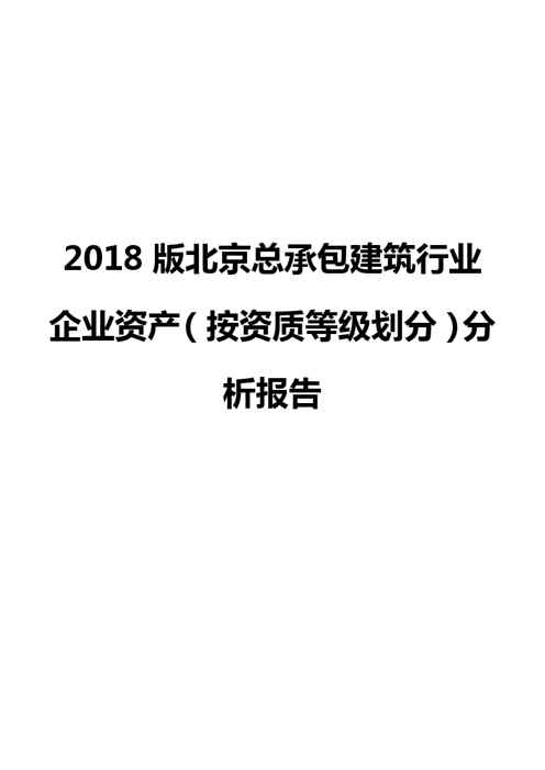 2018版北京总承包建筑行业企业资产(按资质等级划分)分析报告2018版北京总承包建筑行业企业资产(按资质等级划分)分析报告2018版北京总承包建筑行业企业资产(按资质等级划分)分析报告