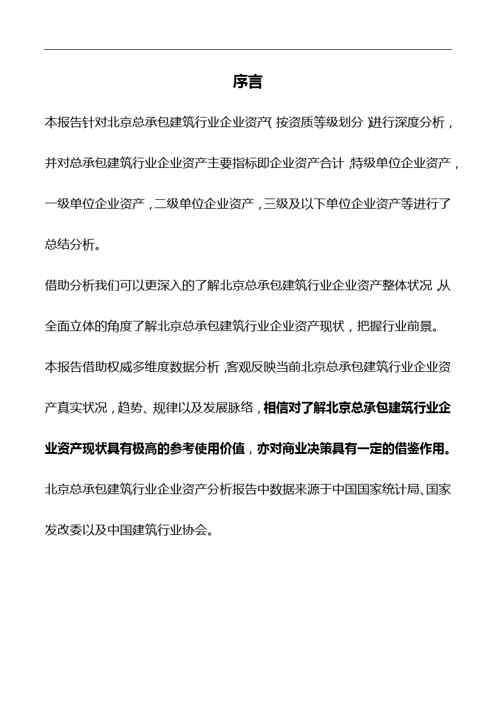 不久前,最新文档《2018版北京总承包建筑行业企业资产(按资质等级划分)分析报告》全文正式在本站发布,感兴趣的用户可以下载阅读。