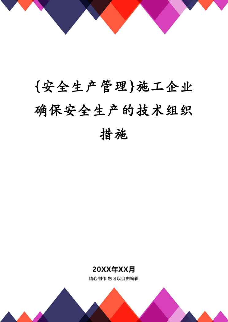 本站正式发布了《{安全生产管理}施工企业确保安全生产的技术组织措施》文档,文档详细内容可下载阅读。 声明:本站所有文章,如无特殊说明或标注,均为本站原创发布。任何个人或组织,在未征得本站同意时,禁止复制、盗用、采集、发布本站内容到任何网站、书籍等各类媒体平台。如若本站内容侵犯了原著者的合法权益,可联系我们进行处理。