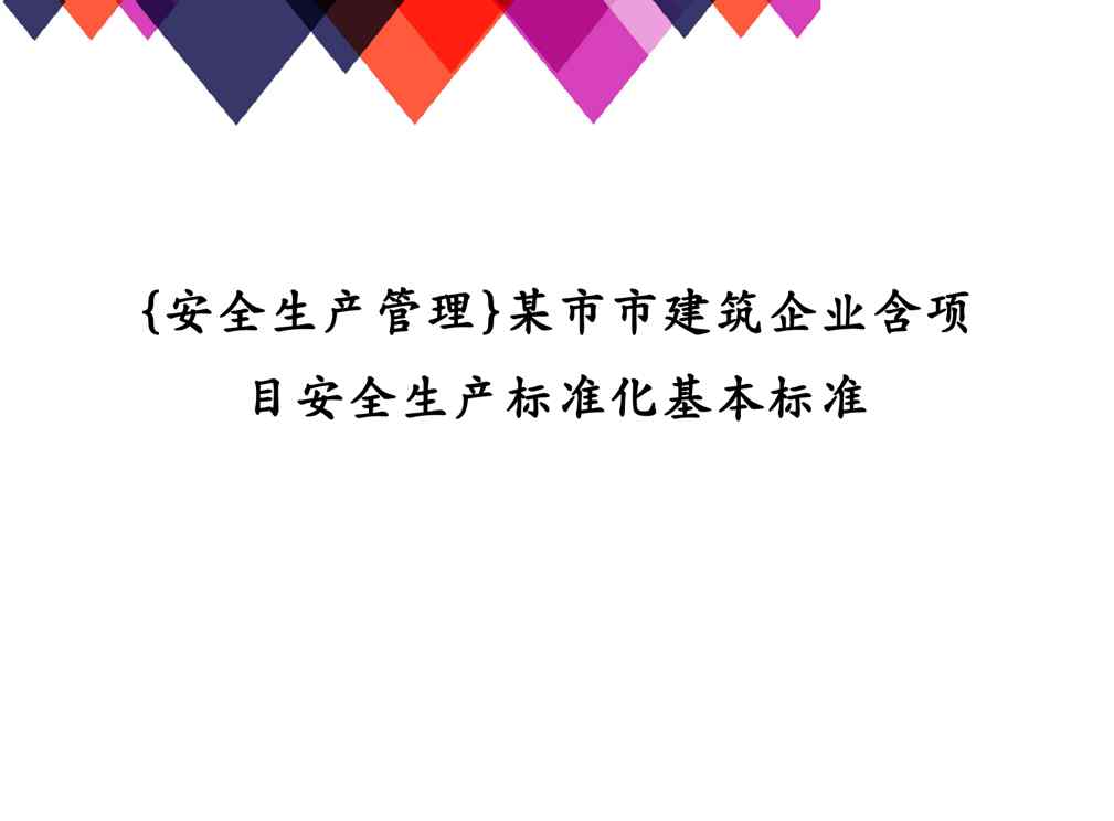 本站资深用户发布了最新的《{安全生产管理}某市市建筑企业含项目安全生产标准化基本标准》文档,以下内容为预览,详细内容可下载阅读。 声明:本站所有文章,如无特殊说明或标注,均为本站原创发布。任何个人或组织,在未征得本站同意时,禁止复制、盗用、采集、发布本站内容到任何网站、书籍等各类媒体平台。如若本站内容侵犯了原著者的合法权益,可联系我们进行处理。