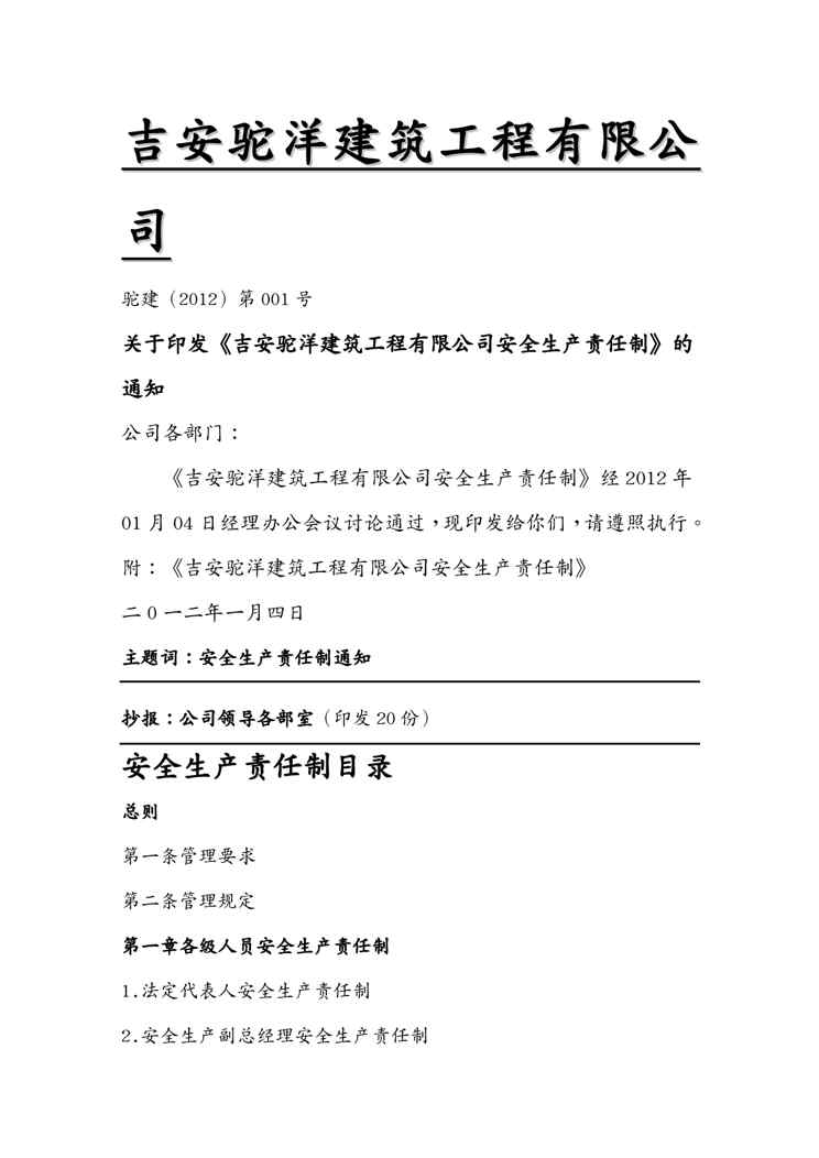 不久前,最新文档《{安全生产管理}某建筑工程公司安全生产责任制度》全文正式在本站发布,感兴趣的用户可以下载阅读。 声明:本站所有文章,如无特殊说明或标注,均为本站原创发布。任何个人或组织,在未征得本站同意时,禁止复制、盗用、采集、发布本站内容到任何网站、书籍等各类媒体平台。如若本站内容侵犯了原著者的合法权益,可联系我们进行处理。