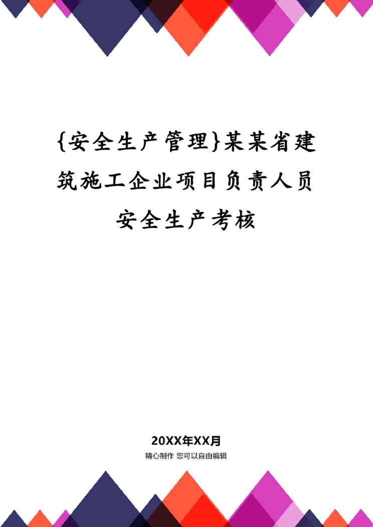 不久前,最新文档《{安全生产管理}某某省建筑施工企业项目负责人员安全生产考核》全文正式在本站发布,感兴趣的用户可以下载阅读。 声明:本站所有文章,如无特殊说明或标注,均为本站原创发布。任何个人或组织,在未征得本站同意时,禁止复制、盗用、采集、发布本站内容到任何网站、书籍等各类媒体平台。如若本站内容侵犯了原著者的合法权益,可联系我们进行处理。